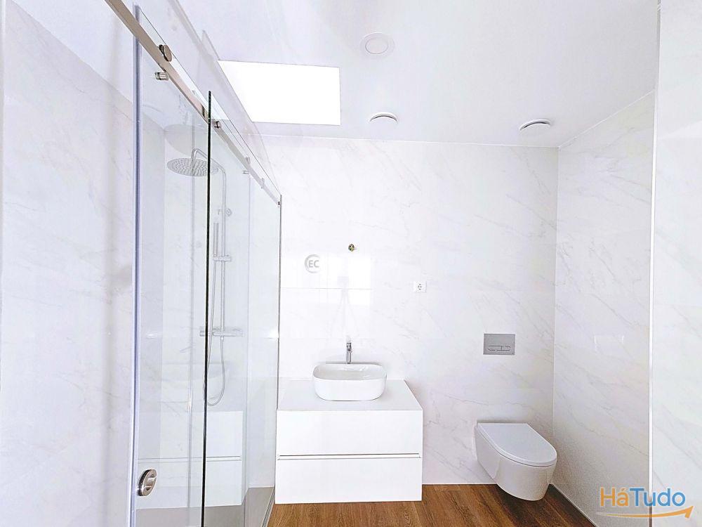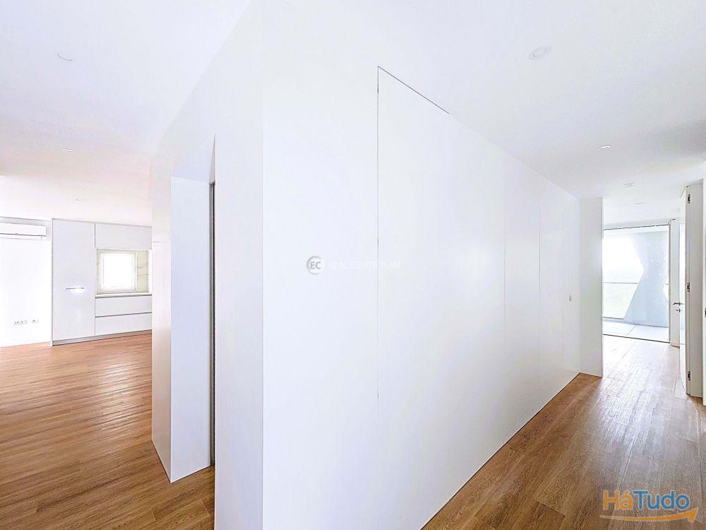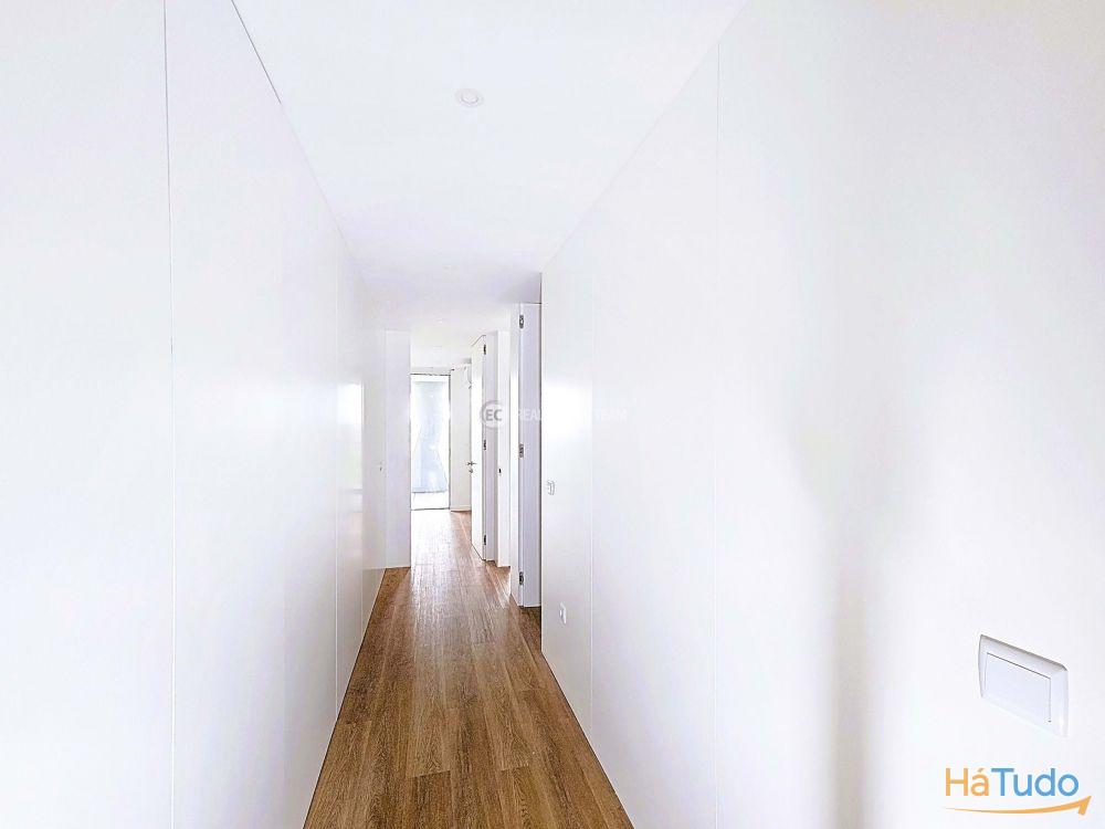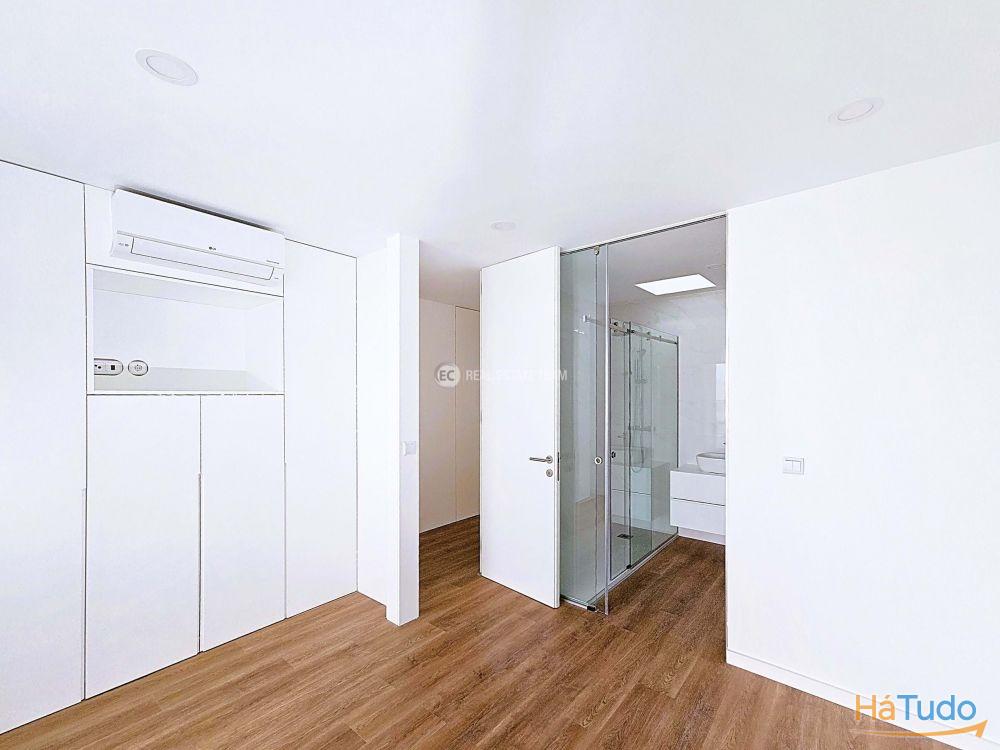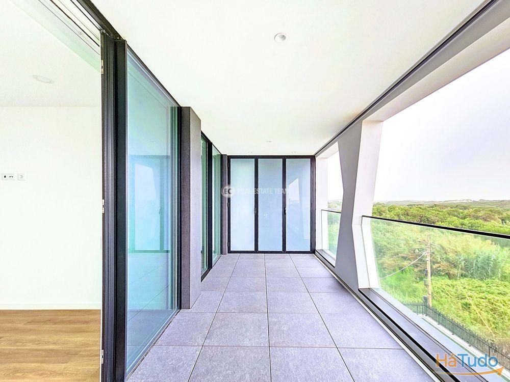 T3 duplex, orientação solar nascente poente, último andar, totalmente novo Zona social virada a poente: sala de estar, sala de jantar e cozinha em open space com acesso a varanda (possibilidade de fechar) e vista direta para o mar Três quartos, sendo um em suíte Duas casas de banho completas: uma privativa da suíte e outra de apoio à área social e aos outros 2 quartos Varandas amplas para desfrutar das vistas e da luz natural