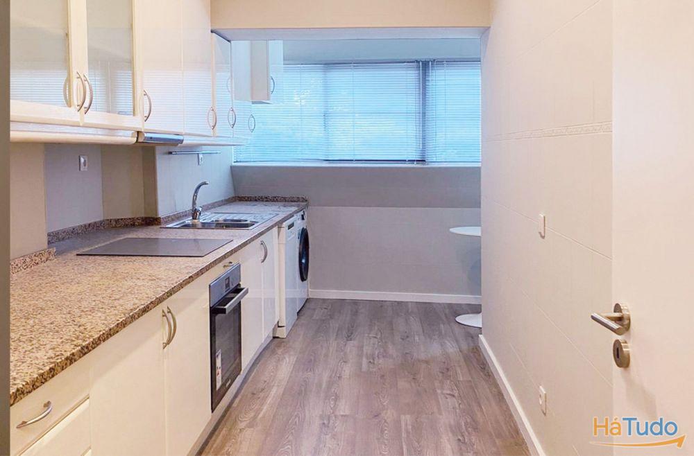 ? Cozinha equipada com: placa, forno, exaustor, frigorifico, máquina de lavar roupa, assim como vários armários de arrumação.