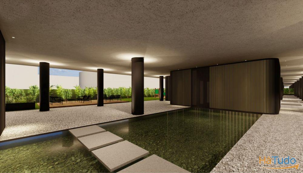 ARRANJO PAISAGISTICO exterior nas zonas comuns, com espelho de água, Parque infantil e zonas de estar/lazer no exterior.