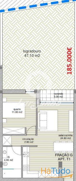 Com uma área bruta de 64m2 e uma área útil de 54m2 e jardim com 50 m2.