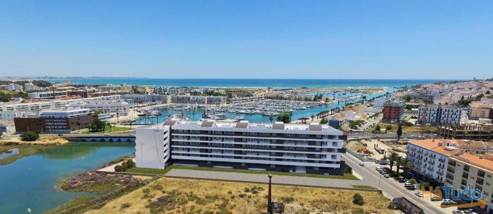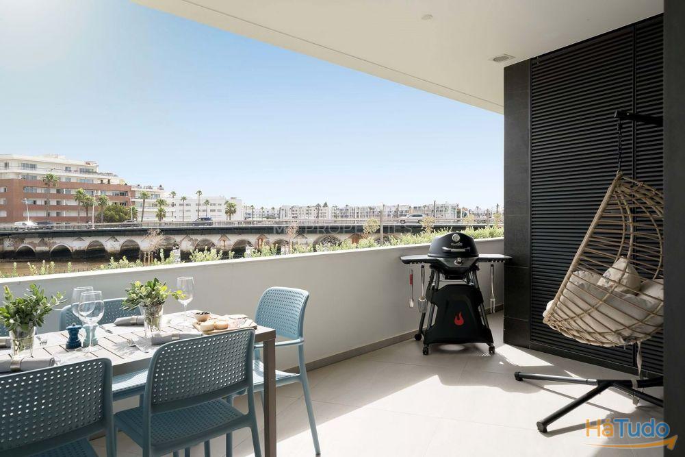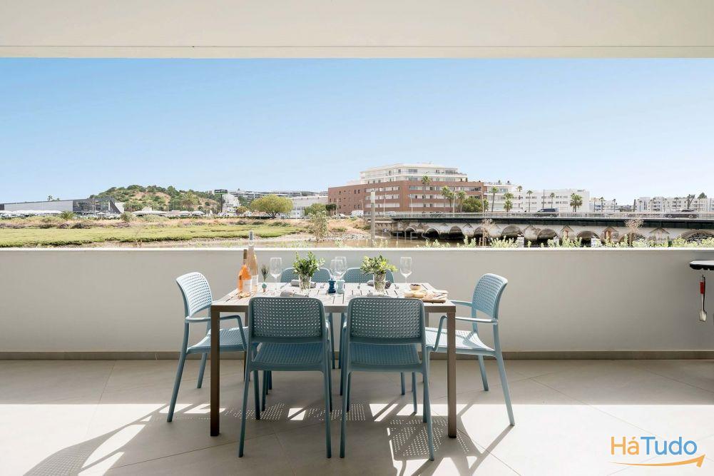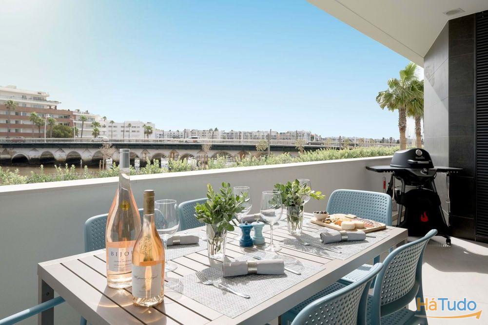Apartamento T2 no rés-do-chão situado na exclusiva Dona Maria Residence, em Lagos, com vistas para o rio e para a marina a partir de uma ampla varanda privada.