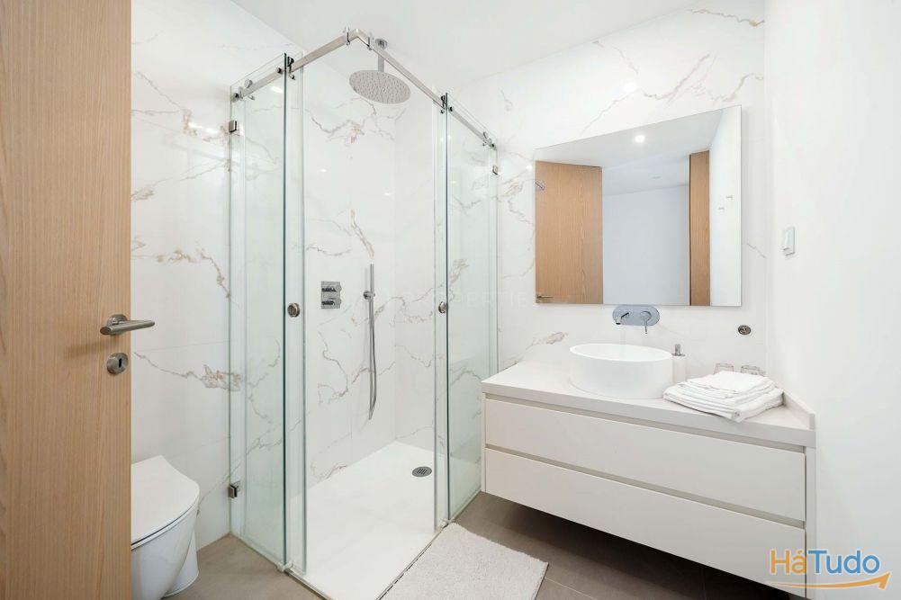 Conta com dois quartos e duas casas de banho, sendo o quarto principal em suite. A propriedade é totalmente climatizada e inclui aquecimento por piso radiante, estores elétricos, sistema de aspiração central e sistema de som integrado.