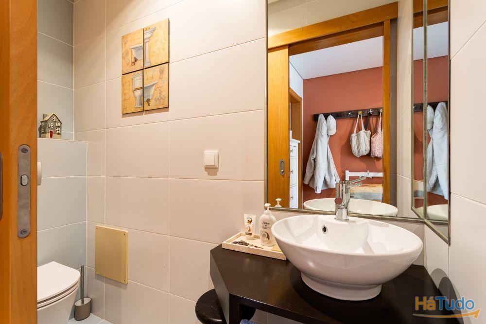 O imóvel é composto por três quartos amplos, sendo um deles uma confortável suíte com acesso a varanda, ideal para momentos de descanso. Dispõe ainda de uma casa de banho social e de uma casa de banho completa de apoio aos dois quartos, assegurando funcionalidade e conforto para toda a família.
