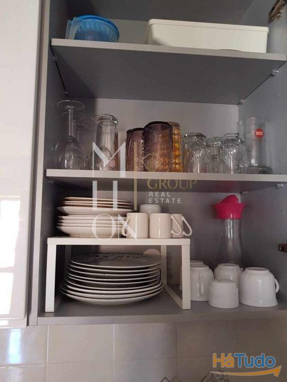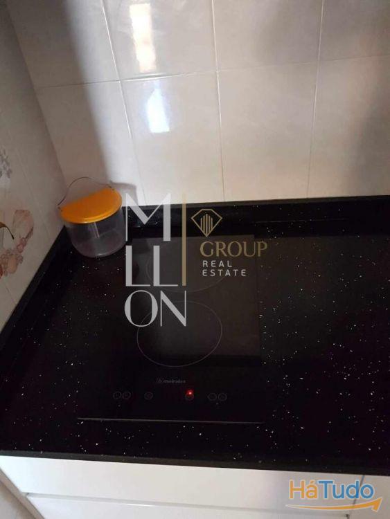 A cozinha compacta, mas totalmente equipada: