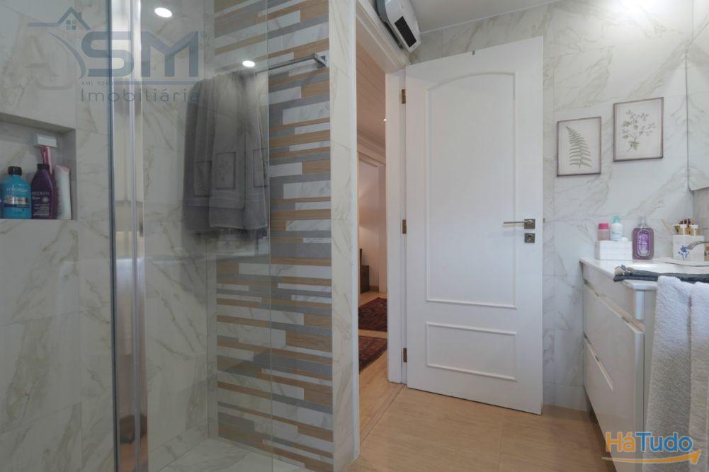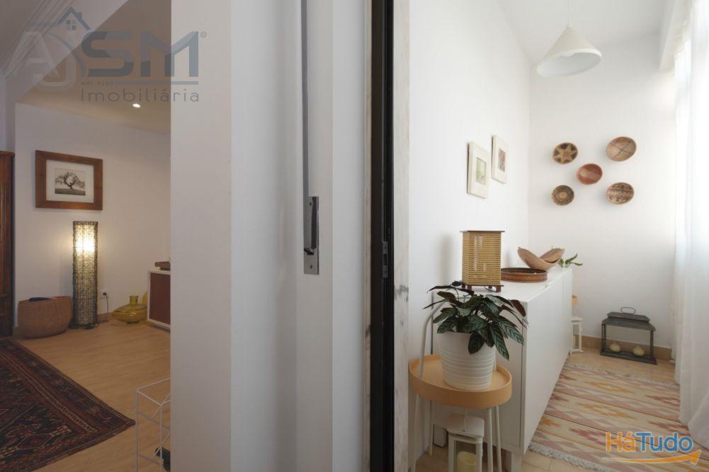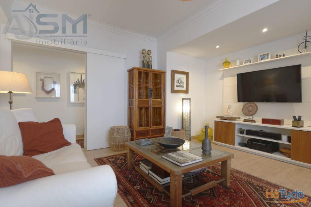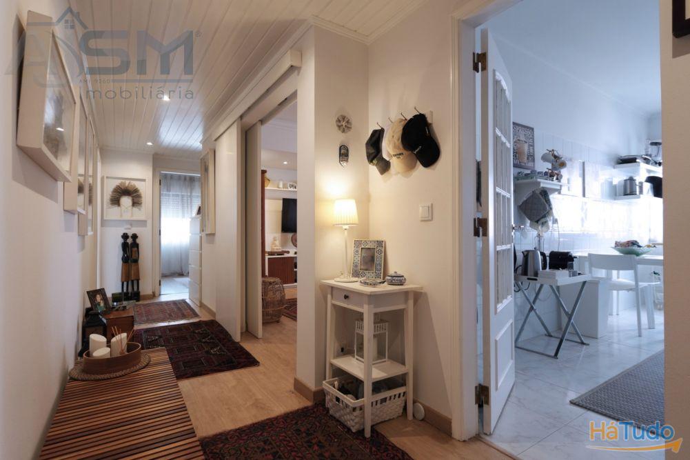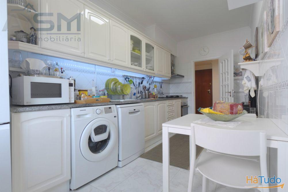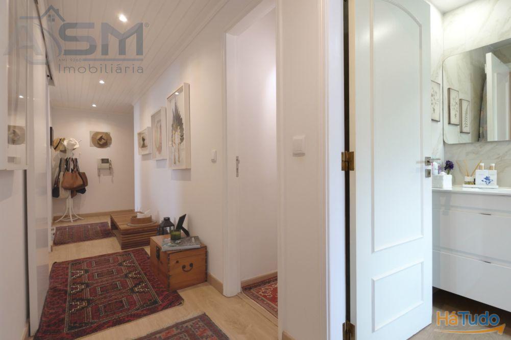 Apartamento com áreas generosas e acabamentos modernos e funcionais, sendo composto por hall de entrada com teto falso em madeira, sala de estar com lareira e uma boa varanda fechada, corredor amplo com uma despensa com prateleiras, cozinha equipada com eletrodomésticos básicos, um quarto amplo com roupeiro embutido e uma casa de banho privativa com cabine de duche e janela.