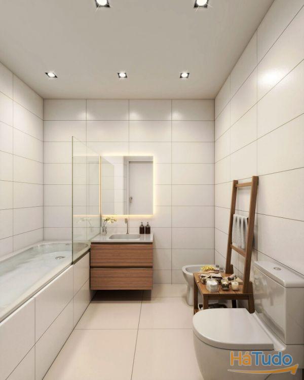 Louça sanitária suspensa, com torneira e armário;