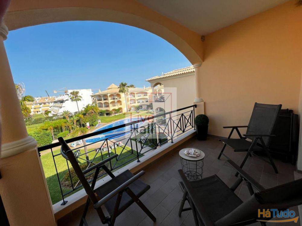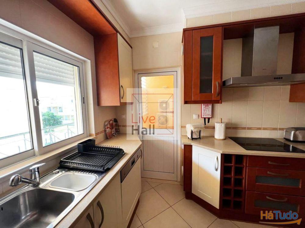 Apartamento T2 para arrendar em condomínio privado com piscina e um lugar de estacionamento. Composto por Cozinha com dispensa e sala de arrumos, hall de entrada, sala com varanda e vista de piscina, quarto com roupeiro embutido e casa de banho completa com banheira e suite com cabide de hidromassagem. Disponibiliza acomodações com ar condicionado, acesso Wi-Fi gratuito e varanda com área de refeição e lazer. A propriedade oferece vistas para a piscina. O apartamento possui uma cozinha totalmente equipada com um micro-ondas, frigorífico, forno, placa em vitroceramica, máquina de café, torradeira, máquina de lavar roupa e loiça e uma área de refeição, 2 quartos com roupeiros embutidos um dos quais com varanda, casa de banho com banheira e casa de banho de serviço, sala com área de lazer com uma televisão de ecrã plano. Apartamento totalmente equipado e mobilado, com roupas de cama adicionais, berço a pedido.