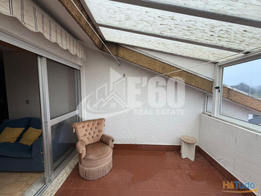 T2 com 74 m², sala e cozinha em open space, dois quartos e casa de banho completa. Totalmente virado a poente, com terraço fechado ao longo de todo o apartamento, garantindo ótima luminosidade. Conta ainda com aproveitamento de sótão para escritório e arrumação.