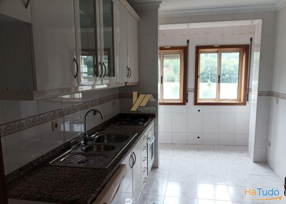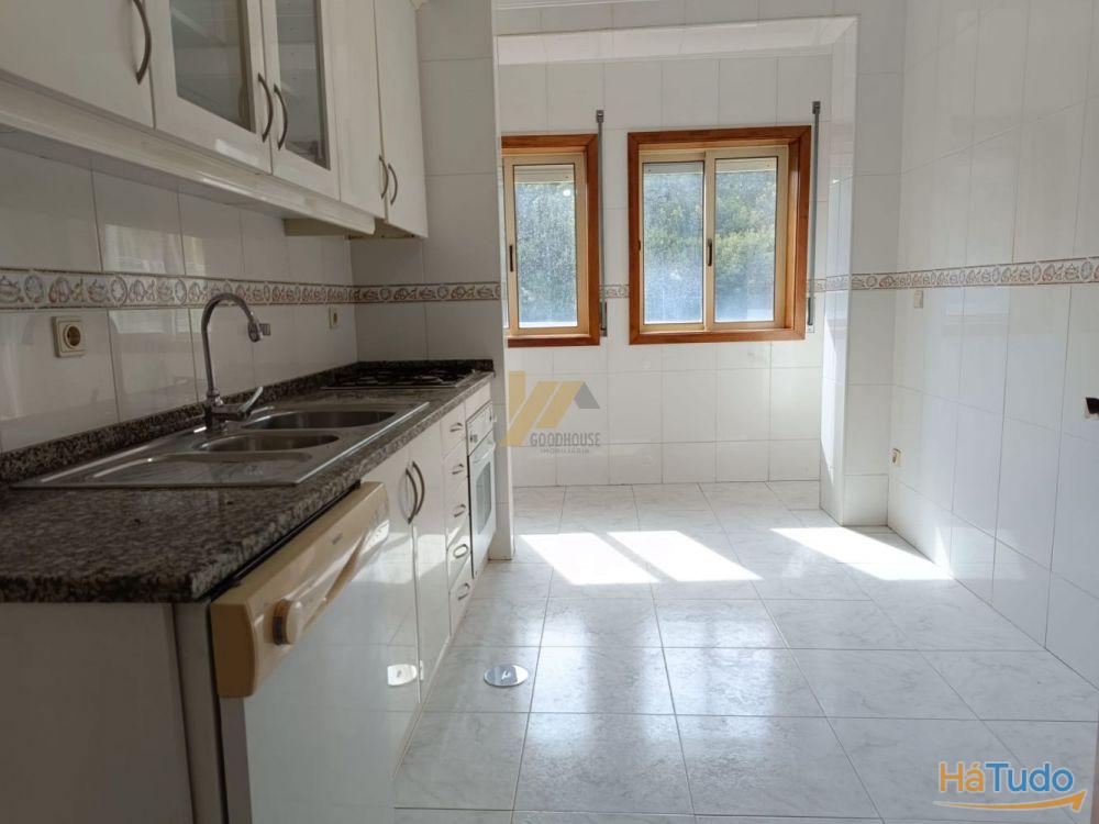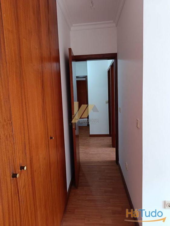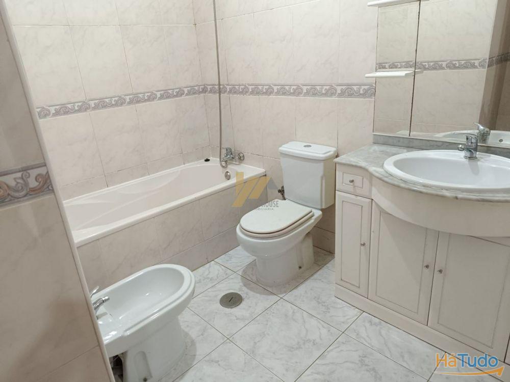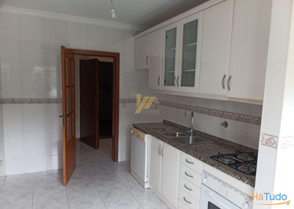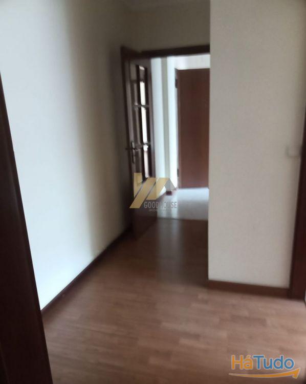 O apartamento dispõe de cozinha semi equipada, sala, hall de entrada e quartos, três quartos com roupeiros embutidos sendo um deles suite com varanda, banho completo e banho da suite com banheira e lugar de garagem para um carro na cave.