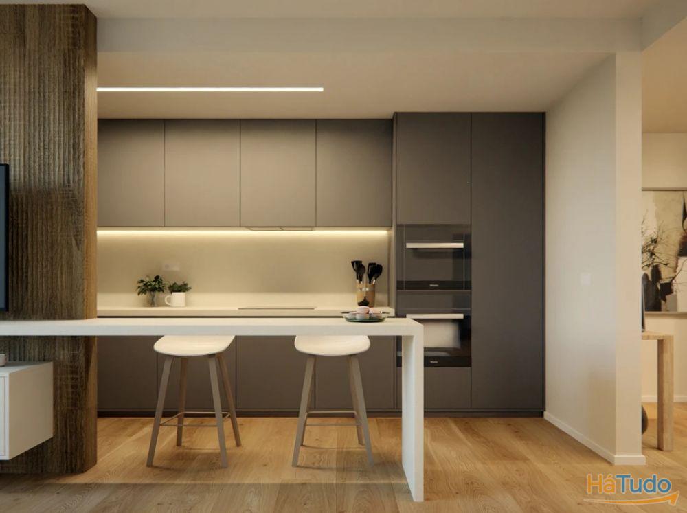 Este imóvel é compostos por uma cozinha equipada com eletrodomésticos (placa de indução, forno, exaustor, combinado, microondas e máquina de lavar loiça), e sala em open space ideal para quem gosta de um ambiente social e moderno, permitindo uma interacção entre cozinhar e conviver com a família e amigos,