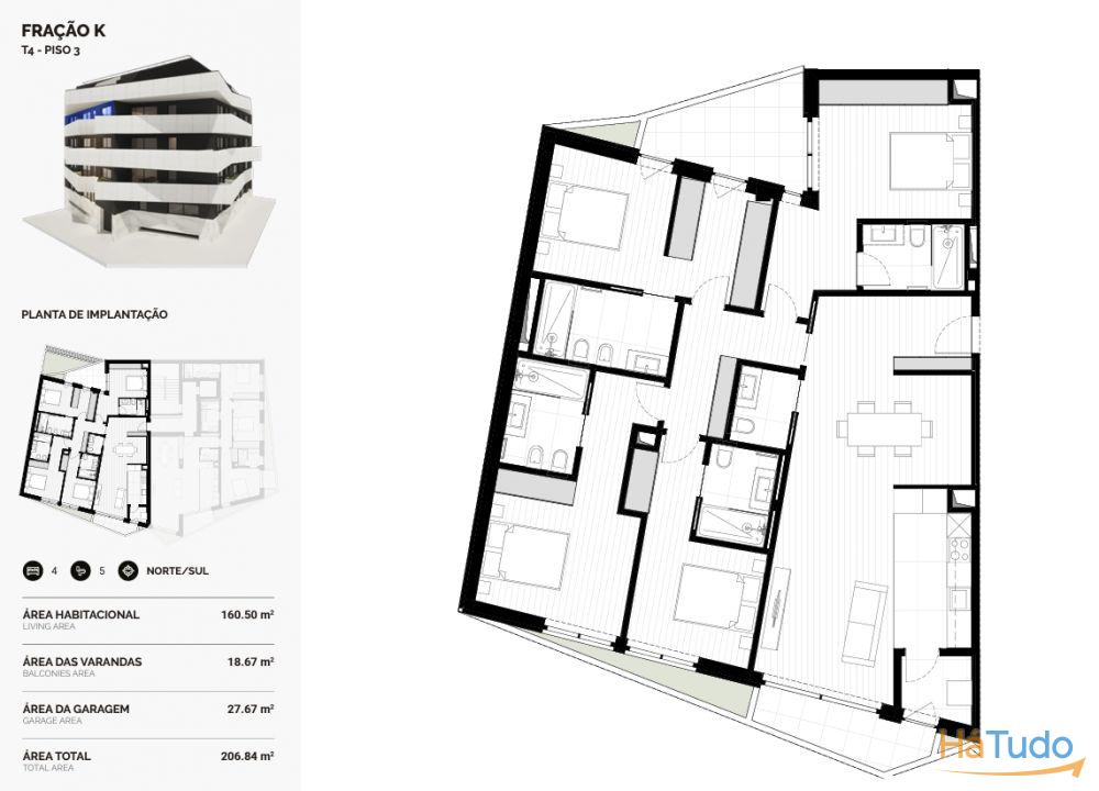 O imóvel dispõe de 4 suítes, 1 W.C. de serviço, cozinha equipada, lavandaria e 2 varandas. Dispõe ainda de 2 lugares de garagem na cave.