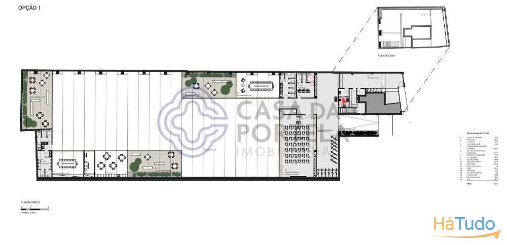 O imóvel tem duas áreas distintas: uma com 1568m2 e uma loja com montra com 160m2 e dois pisos.