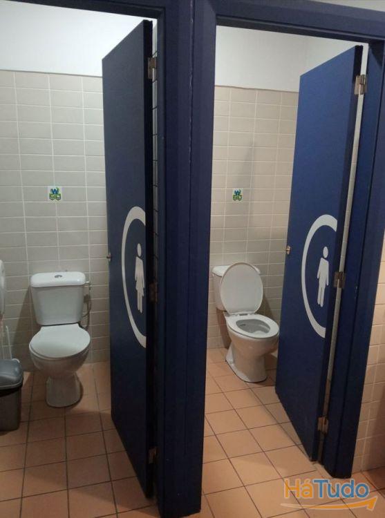 2 casas-de-banho com distinção de M/F, 1 casa de banho para pessoas com mobilidade reduzida e uma área para cacifos e/ou arrumos