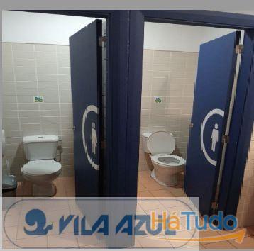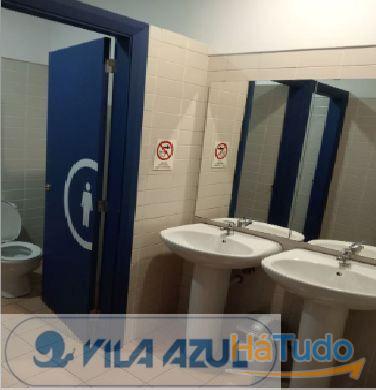 2 casas-de-banho com distinção de M/F, 1 casa de banho para pessoas com mobilidade reduzida e uma área para cacifos e/ou arrumos