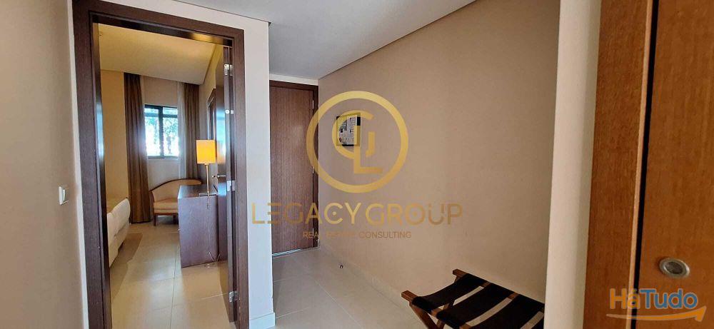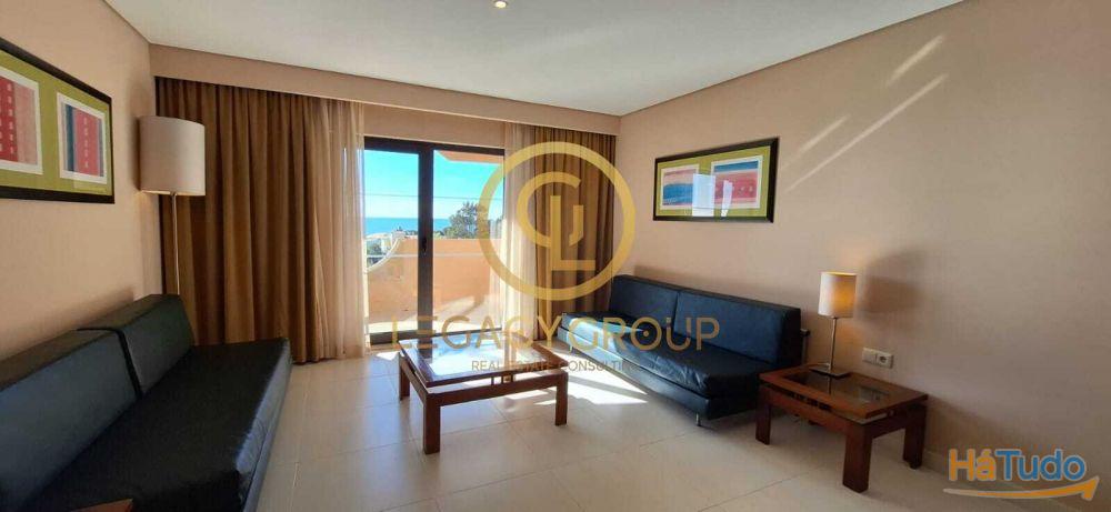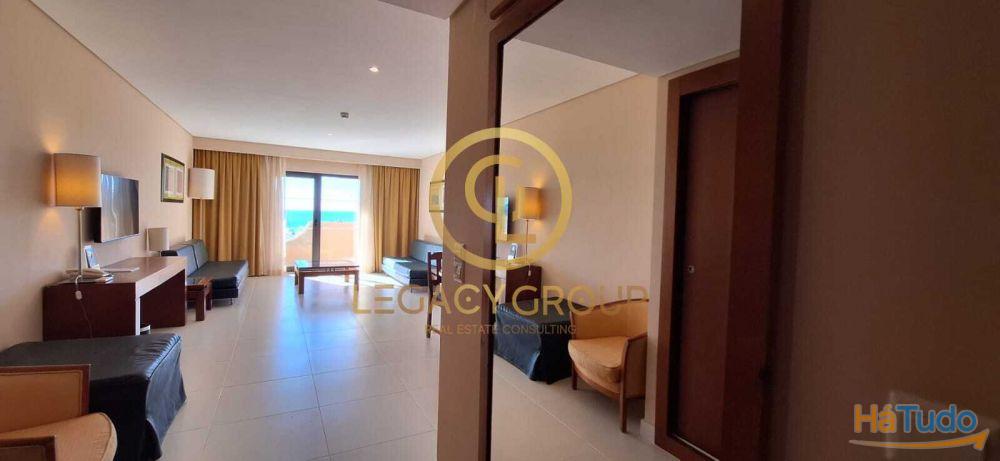 Este apartamento com kitchenette, moderno e amplo tem vista piscina e mar.