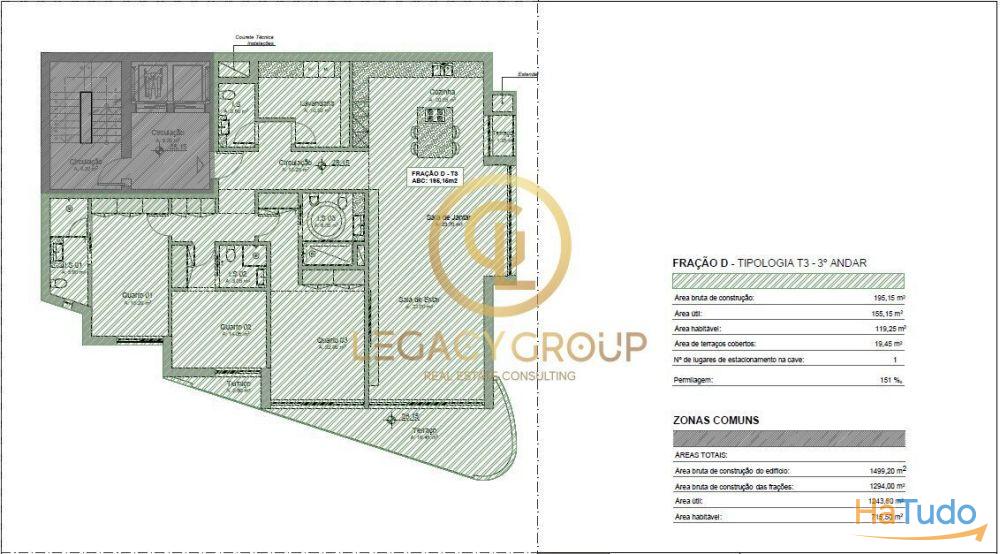 Áreas: 155.15m² (Útil) | 195.10m² (Bruta);
