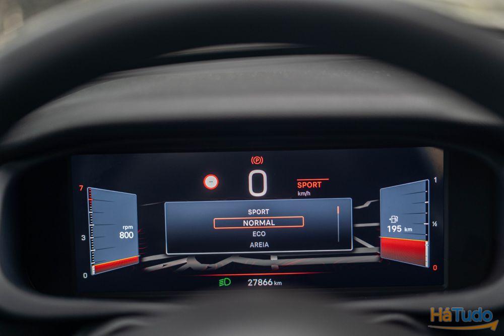 - Modos de condução: Areia, Neve, Eco, Normal, Sport