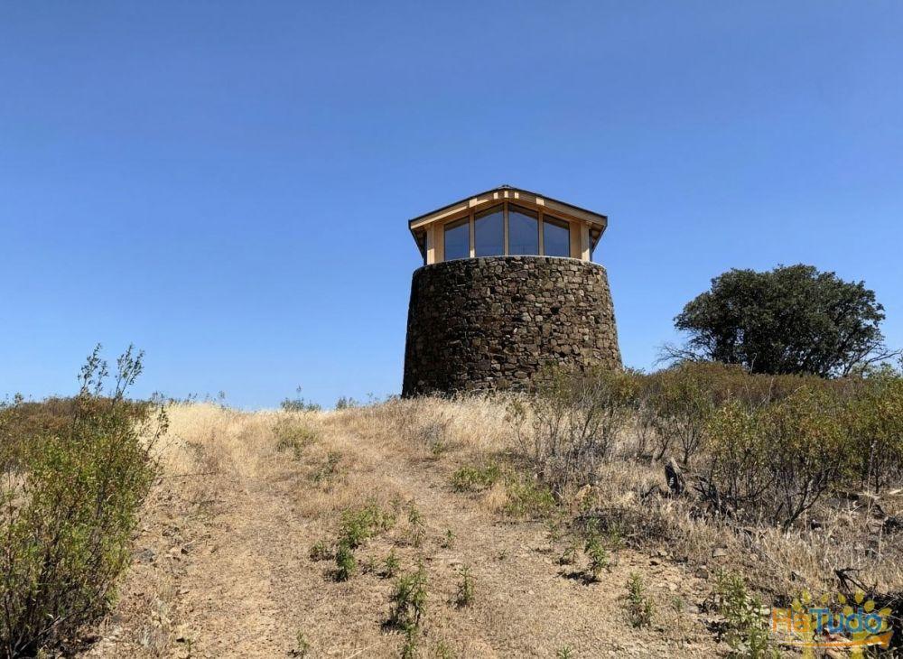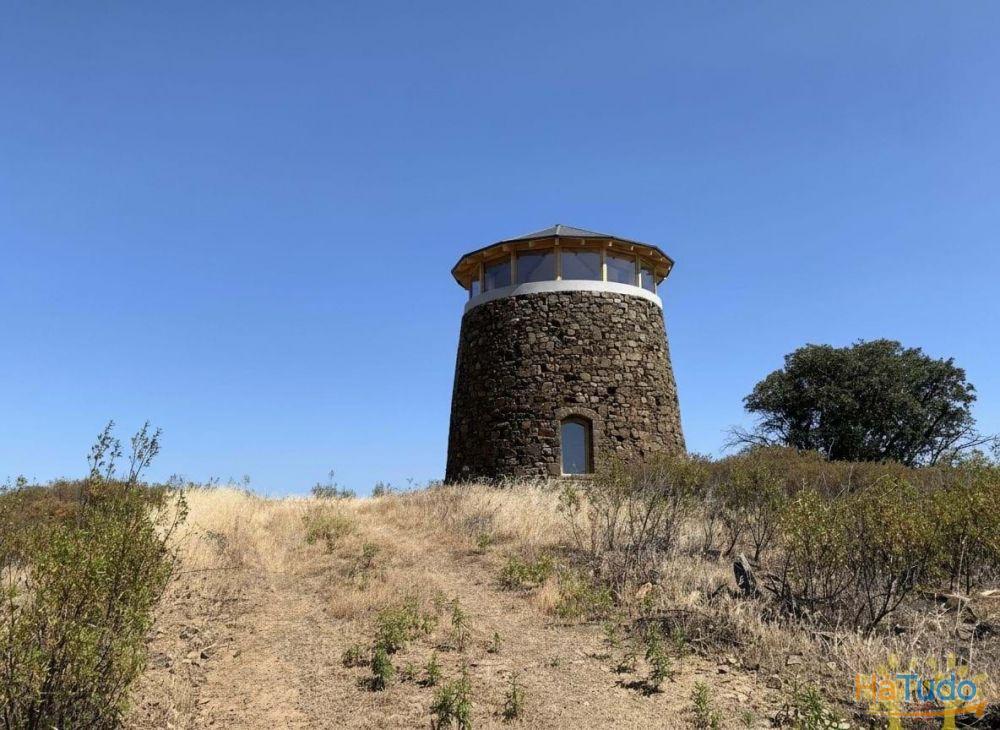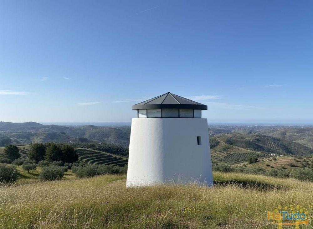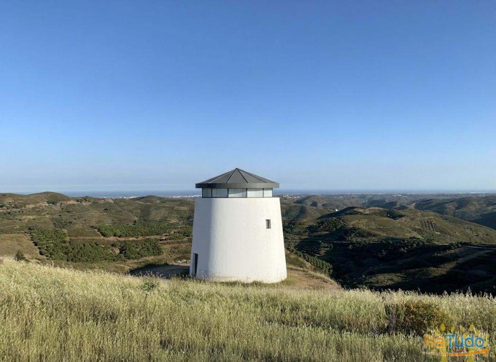 Implantado num terreno com 520 m², o moinho beneficia de uma vista panorâmica de 360º absolutamente extraordinária, que se estende por quilómetros sobre a paisagem envolvente até ao mar. Em dias de céu limpo é possível inclusive avistar a costa de Espanha no horizonte.