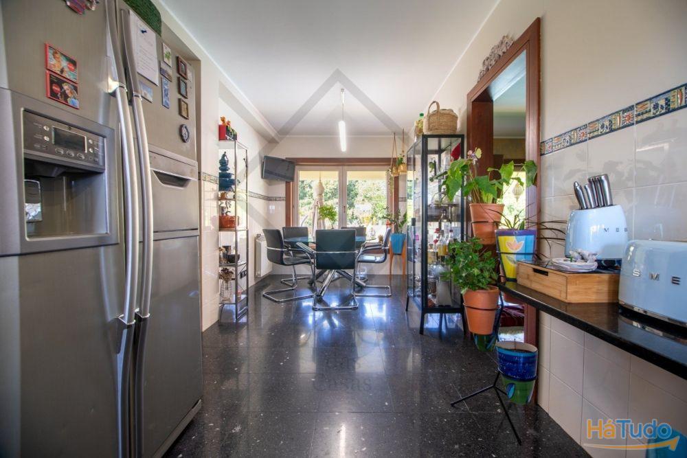 A cozinha, atravéz do seu interessante formato, está subtilmente dividida da copa, possuí uma área generosa, está totalmente equipada, com a banca debaixo de uma bela vista campo orientação Este e a copa fica numa zona afastada da entrada principal, com uma vista lindíssima e tranquila para o jardim, piscina e floresta, podendo assim disfrutar de um belo pequeno-almoço ou refeições rápidas. A cozinha, tem 3 acessos, um na entrada principal, outro para a sala comum (entrada para a área das refeições) e o terceiro para o hall de acesso à garagem, dispensa e, lavandaria (ambas de boa dimensão, bem arejadas com janela e luz direta), cave, 1.º andar zona privada e jardim da zona de lazer e piscina.