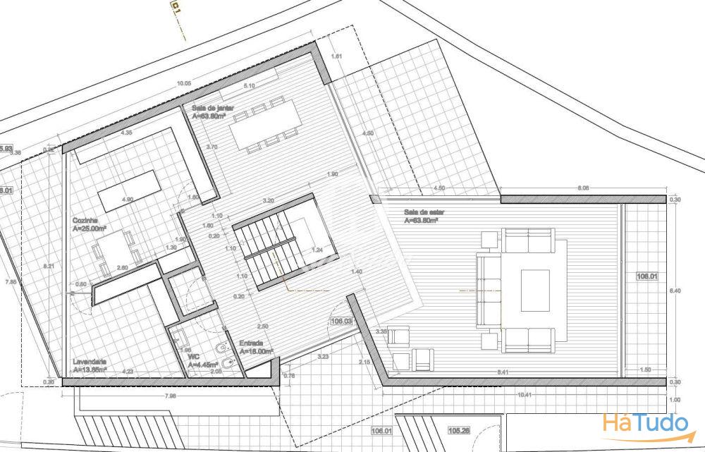 Ao nível do rés-do-chão, temos um hall de entrada amplo, com roupeiro embutido, um wc de serviço, cozinha com 25 m2, mobilada e equipada, lavandaria com 14 m2 e cesso a uma ampla varanda. Ainda uma sala de jantar com 64 m2 ampla em opensapce para a sala de estar com 84 m2, vistas fantasticas e acesso ao jardim com piscina.