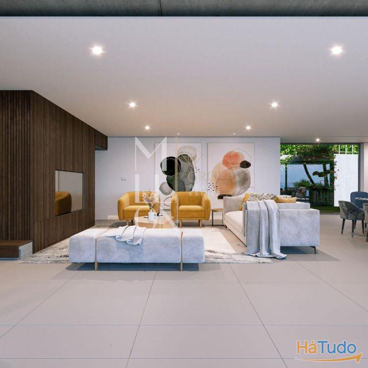 - Sala de Estar, Sala de Jantar e Cozinha em Open-Space: Um espaço amplo e integrado com vista para o mar e para a piscina. Os vãos recolhem-se dentro das paredes, permitindo que a zona social se abra completamente para o exterior, criando uma sensação de liberdade e contato com a natureza.