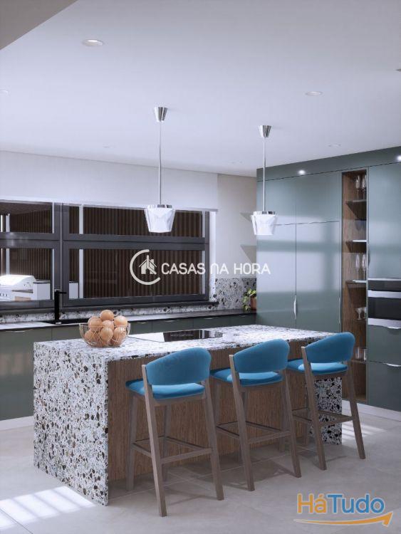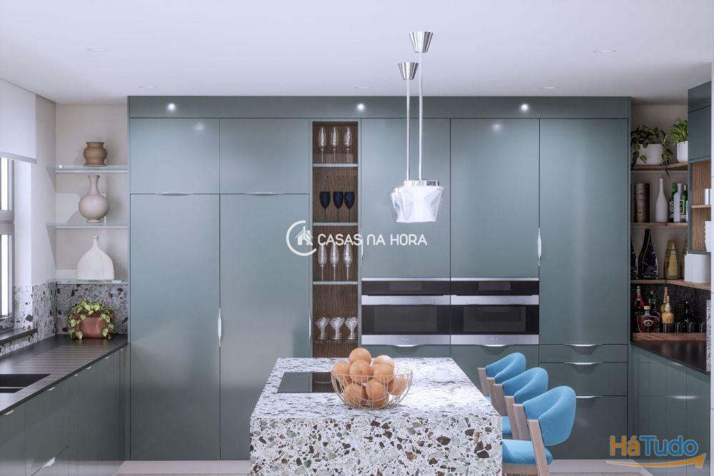 O piso inferior é composto por uma suite, 1 wc de apoio, uma cozinha totalmente equipada e uma ampla sala de estar.