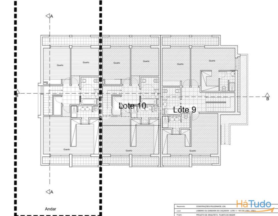 No primeiro andar, três quartos. Dois deles suite. Roupeiros embutidos. Varandas. Três casas de banho sendo duas das suites. As casa de banho ficam com resguardos em vidro. Loiças suspensas. Tetos falsos. Acabamentos atuais.