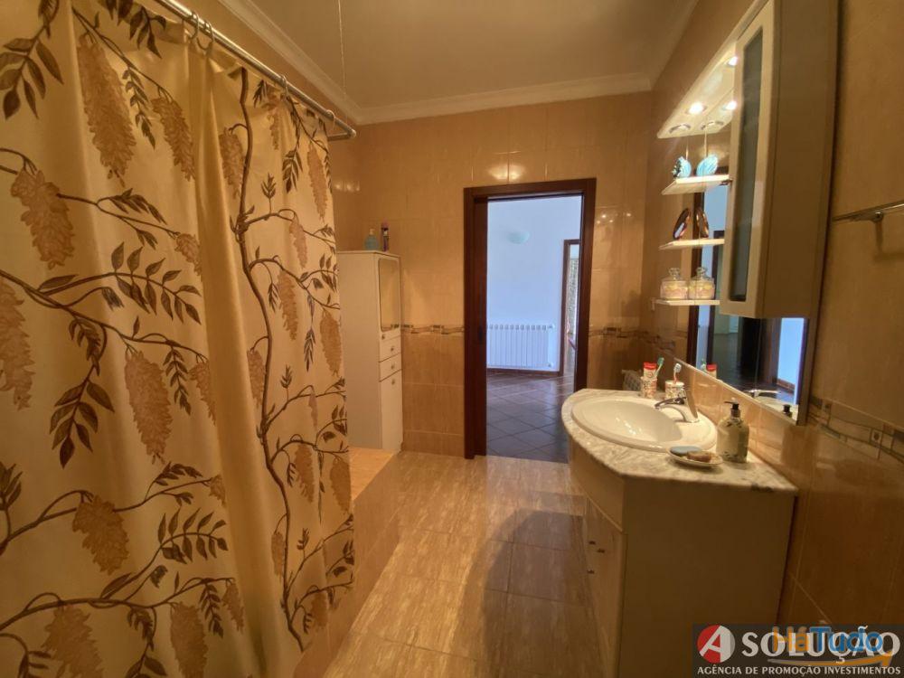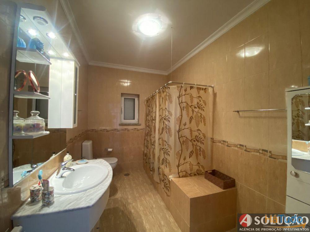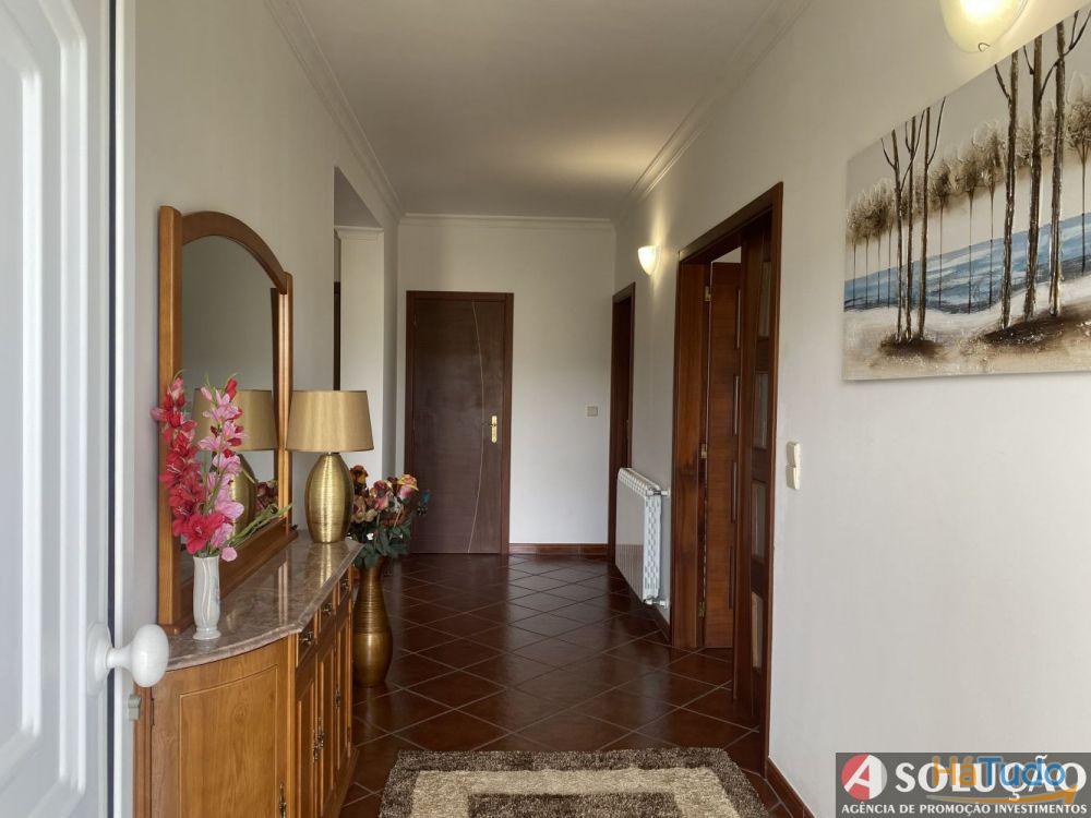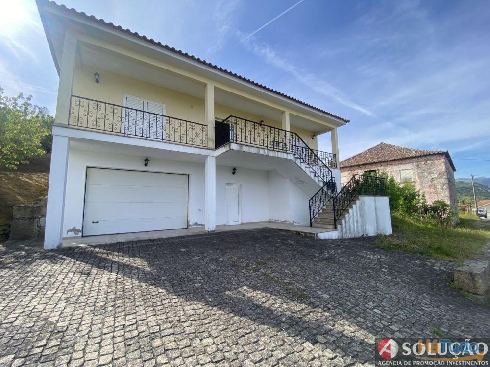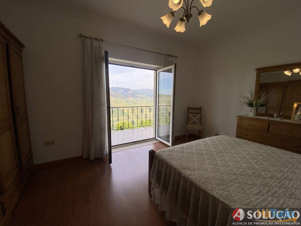 No restante lote e em frente da moradia tem um pequeno jardim e espaço de estacionamento para os carros sendo que a restante área tem árvores de frutas: cerejeiras, figueiras, laranjeiras, limoeiro, oliveiras e etc.