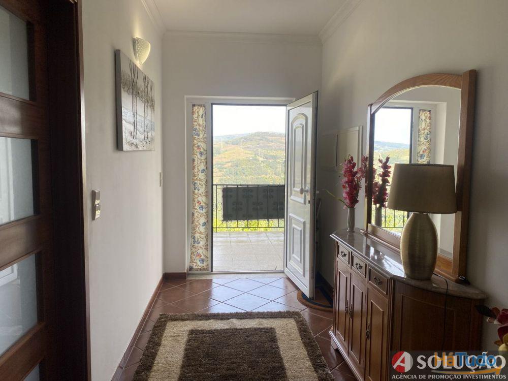Acesso oferecido por amplo e luminoso Hall de entrada que distribui os acessos a uma ampla e espaçosa sala mista sala de estar e de jantar onde se pode desfrutar de uma deslumbrante paisagem sobre o rio Douro internacional e o seu vale através de grandes e amplas portas janelas que dão também acesso a uma varanda bonita varanda.