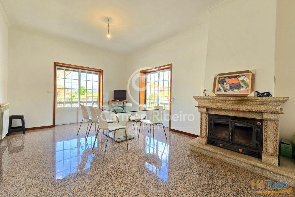 R/C com sala ampla tendo 2 portas janelas com acesso a varanda e lareira. Cozinha mobilada e equipada, 1 quarto com porta janela com varanda e 1 casa de banho completa com base de chuveiro.