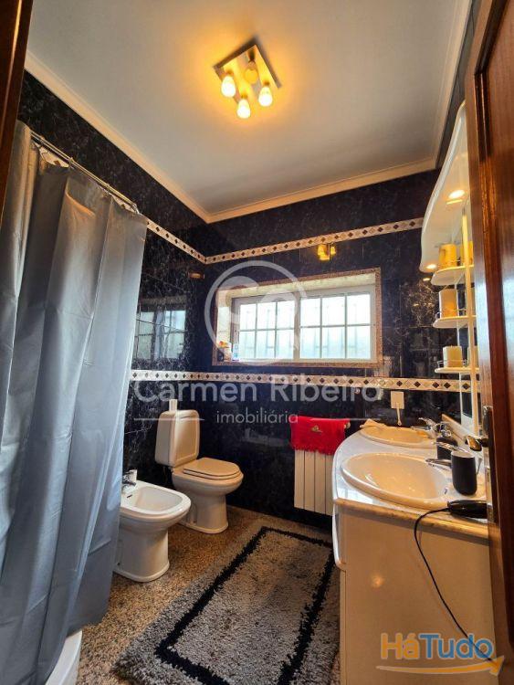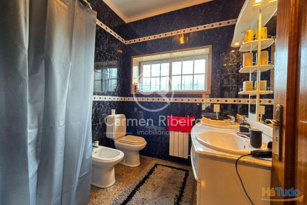1º piso com 3 quartos, 1 casa de banho completa com banheira. 2 dos quartos partilham um amplo terraço com vistas desafogadas sobre a freguesia. Soalho nos quartos.