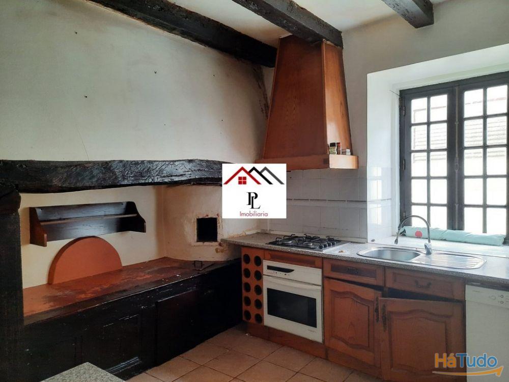 No primeiro andar: Quatro quartos, um é suite Um closet Duas casas de banho Uma cozinha grande muito simpática onde se mistura o forno á antiga com um ar já mais moderno.