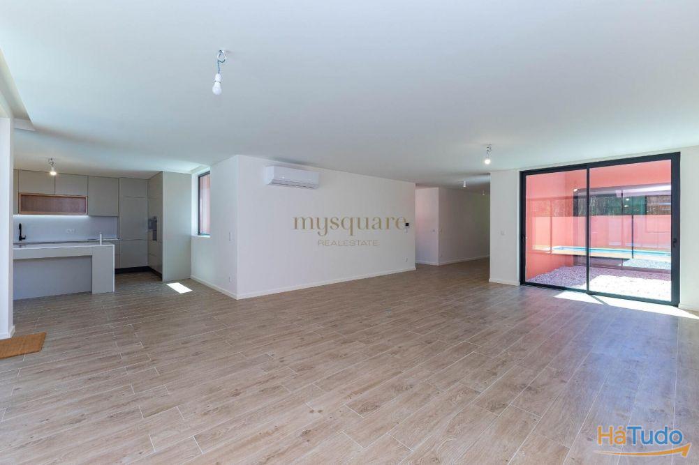 O coração da casa revela-se num amplo espaço em open-space, onde sala e cozinha se fundem num só ambiente fluido, elegante e social. Este espaço conecta-se diretamente com o jardim exterior e a piscina aquecida ? ideal para momentos de lazer em qualquer altura do ano. A luz entra em abundância graças aos pátios/jardins interiores, que funcionam como verdadeiras fontes de tranquilidade e luz natural.