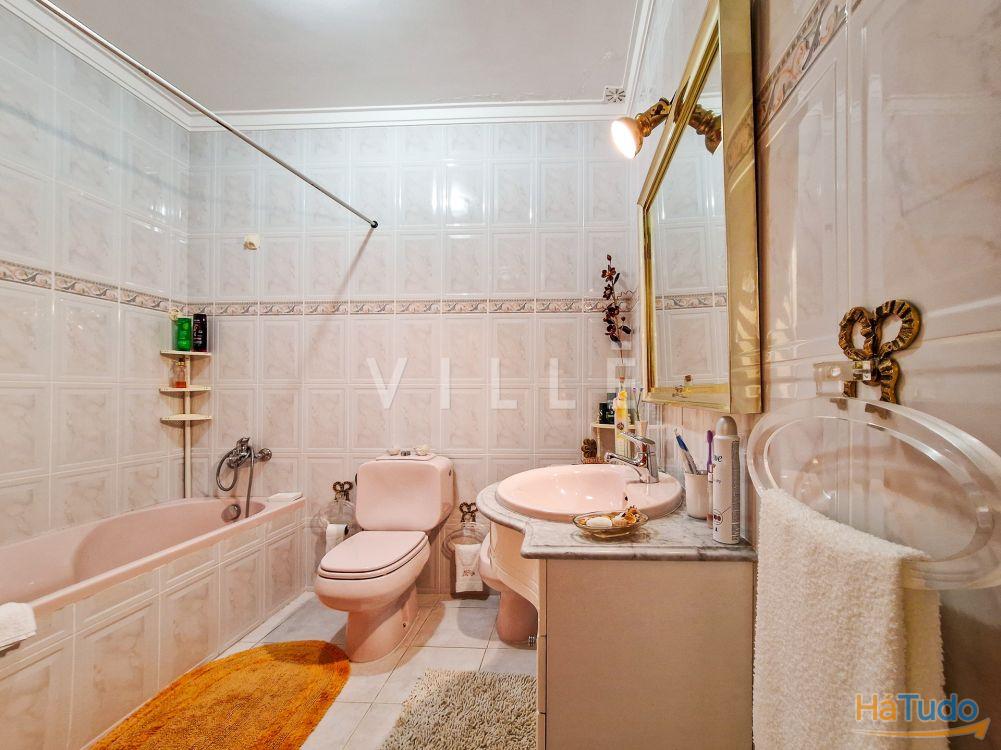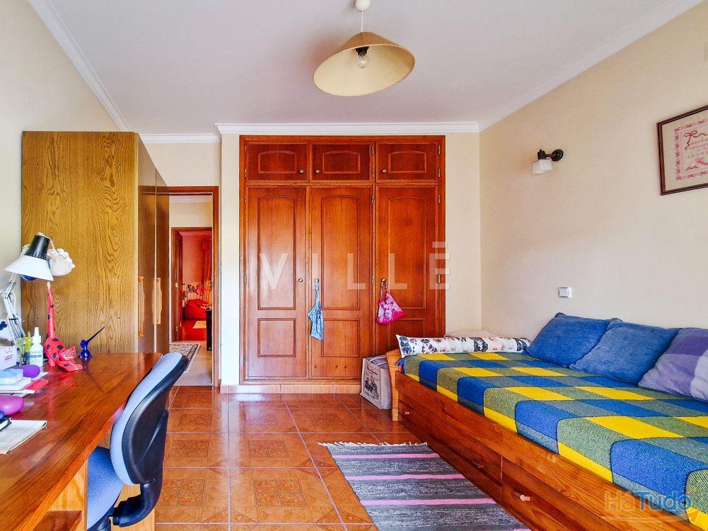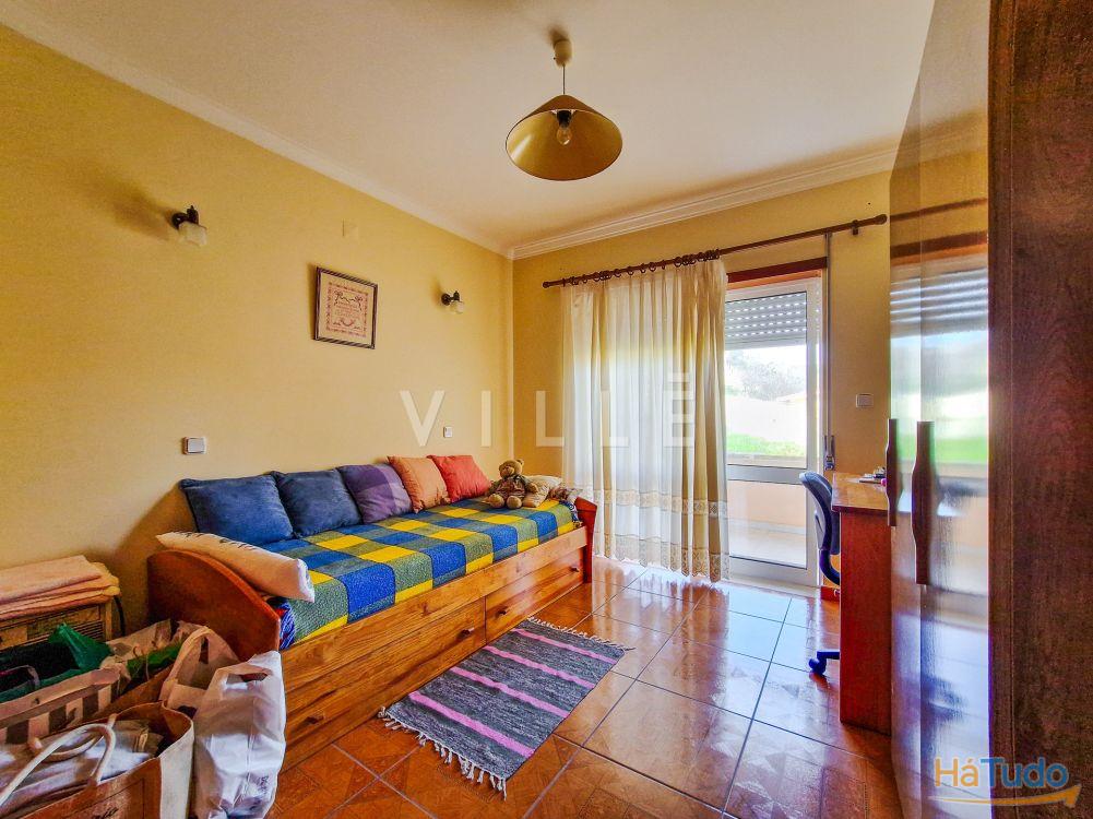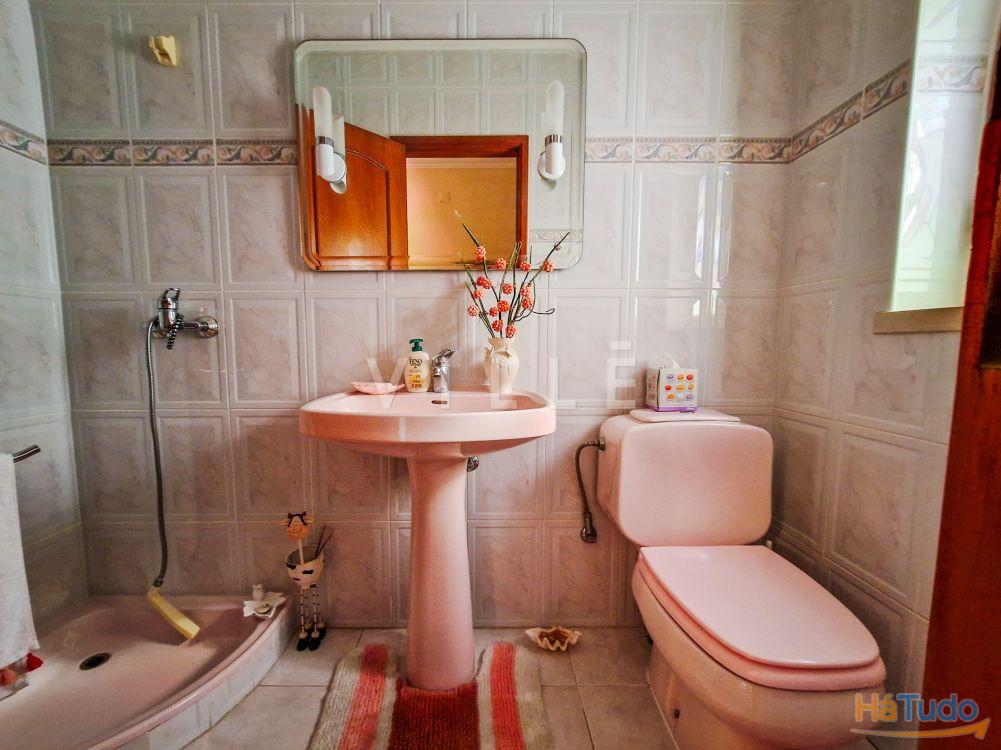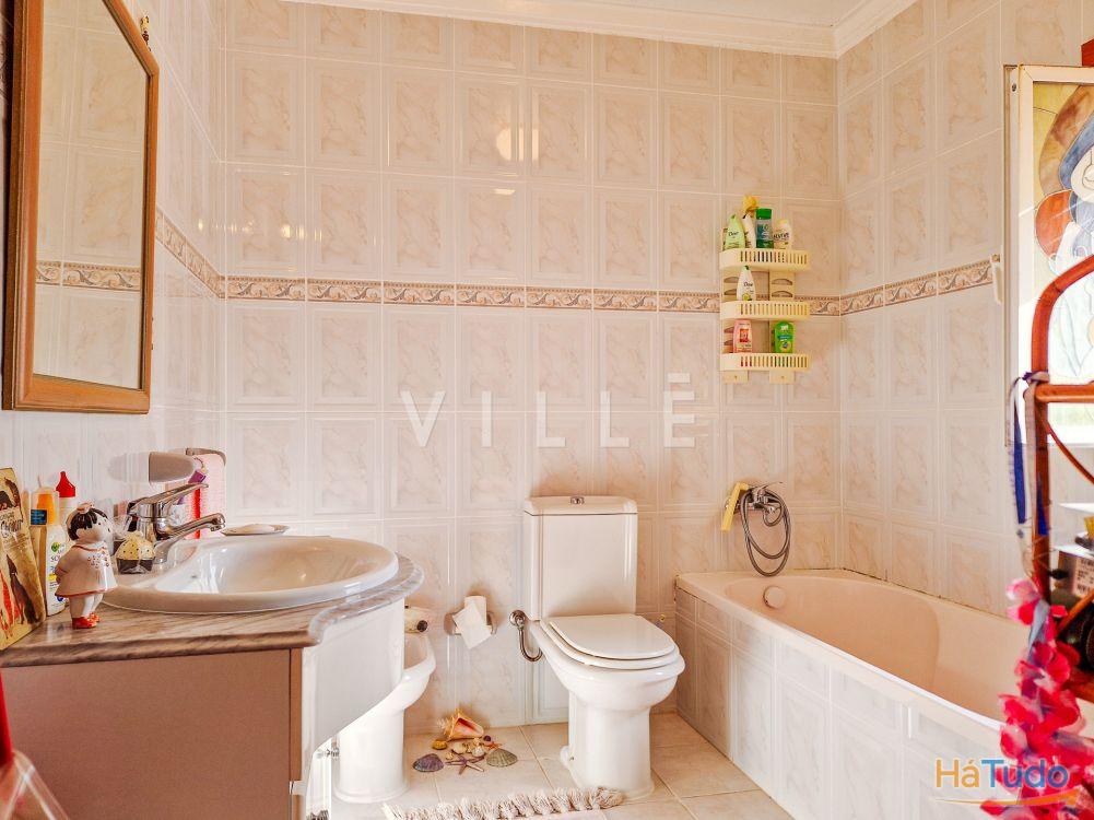 O piso superior, primeiro andar, é composto por três quartos, sendo um deles suíte com banho completo e casa de banho completa que serve os outros quartos. Todos os quartos têm roupeiro embutido e varanda.