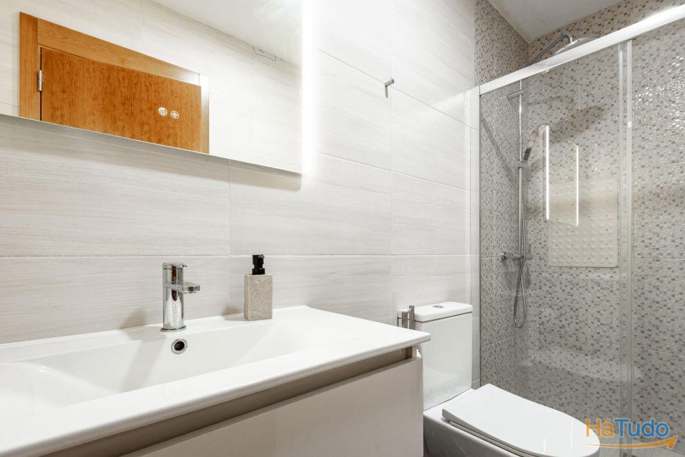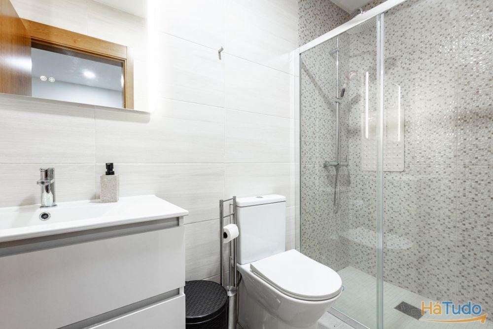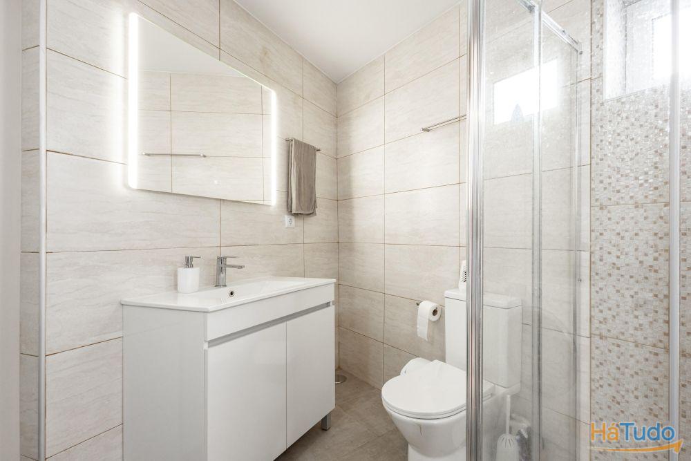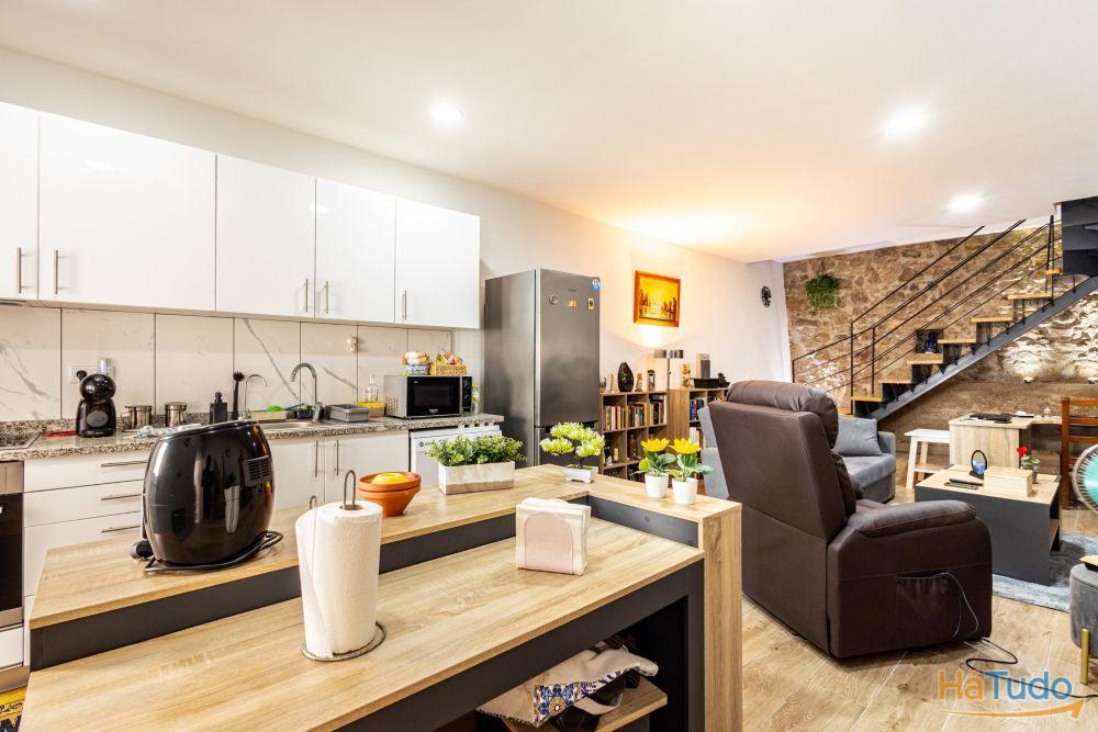 Área bruta de construção de cento e vinte e cinco metros quadrados. Esta moradia e composta por um quarto com generoso closet, uma sala cozinha em open space, duas casas de banho completas, um logradouro com churrasqueira e um terraço.