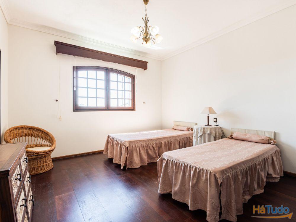 - Piso superior com sala, cozinha, três quartos, casa de banho, hall, corredor e varandas. Terraço lateral.