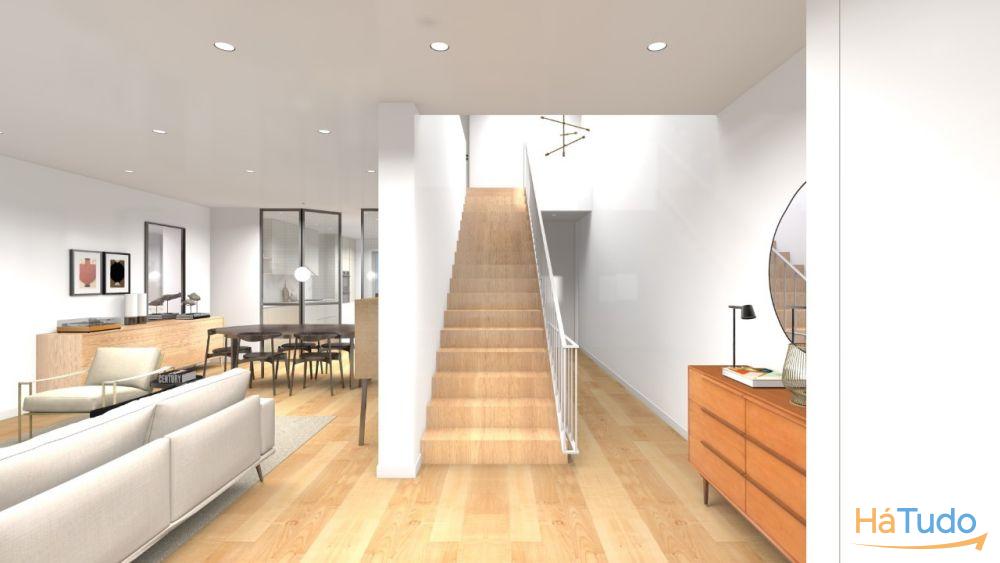 No r/c apresenta um hall de distribuição, uma ampla sala com cozinha equipada em open space.Lavandaria e com acesso a um terraço. Wc de serviço.