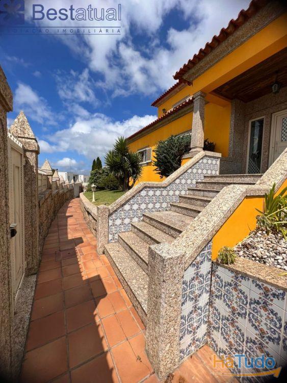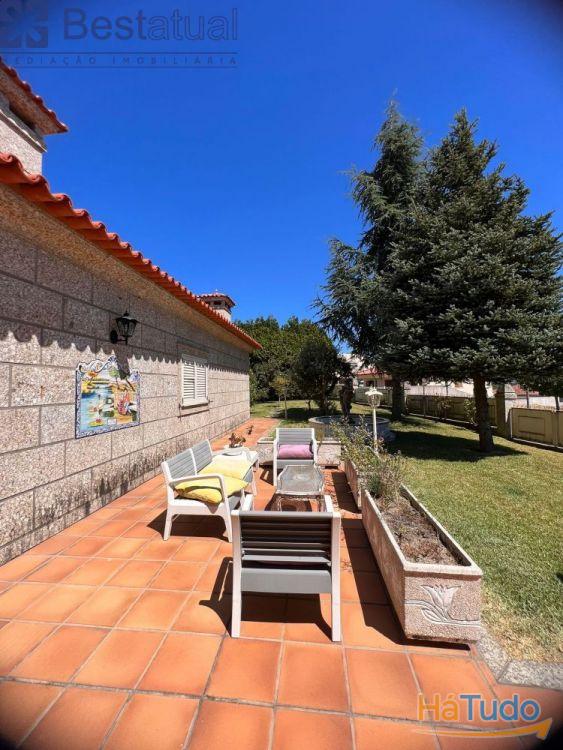 Exterior - Grandes muros em pedra em volta de toda a propriedade, enormes jardins envolventes com árvores, estatuas, fontes, iluminações em todo o exterior, áreas de lazer, piscina, balneário, churrasqueira + forno, cozinha regional (Estando agora com quarto de hospedes, com casa de banho e cozinha), casa de máquinas (tratamento da piscina e pré instalação de bomba de calor, canil, furo, rega automática, etc