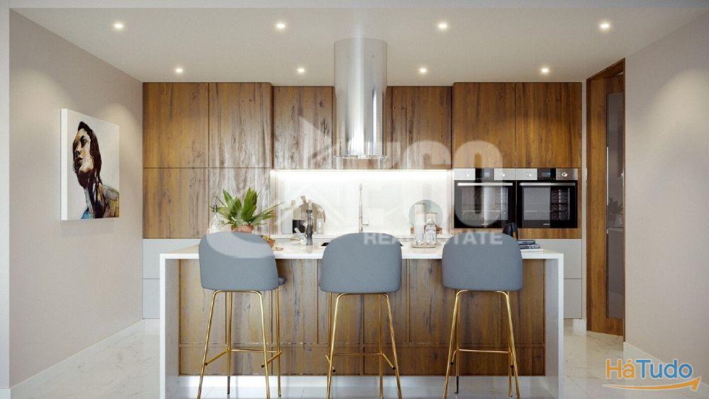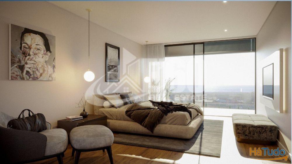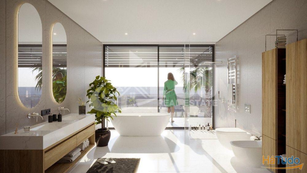 A cozinha, concebida como o coração da casa, abre-se para um amplo pátio, perfeito para convívios e churrascos, proporcionando uma experiência única de refeições ao ar livre num ambiente descontraído e elegante. A master suite, o destaque da zona íntima da moradia, dispõe de uma varanda exclusiva com uma deslumbrante vista panorâmica para o mar, ideal para momentos de relaxamento e contemplação.