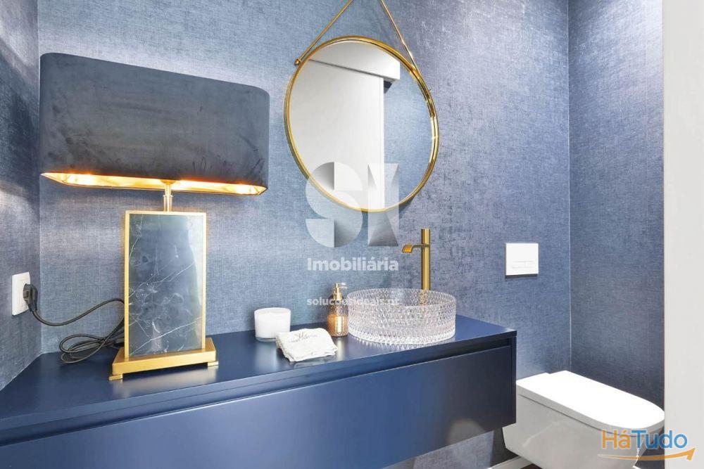 ? Rés do chão: Hall de entrada com lavabo, cozinha multifuncional com eletrodomésticos de alto padrão, sala de jantar e sala de estar, criando um ambiente interativo e luminoso.