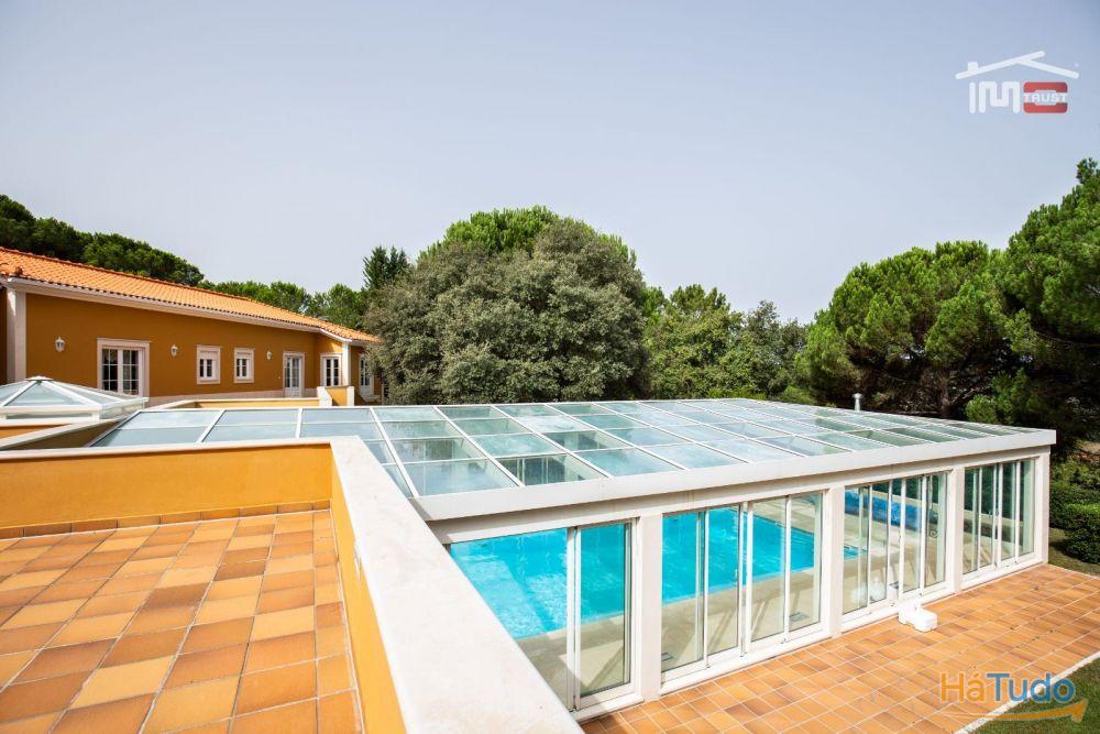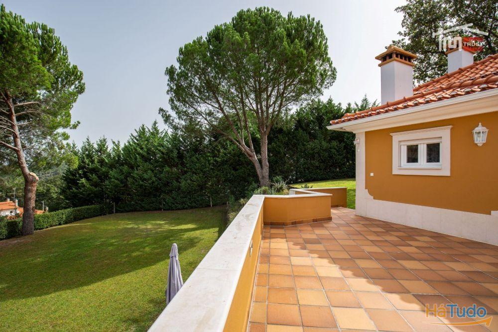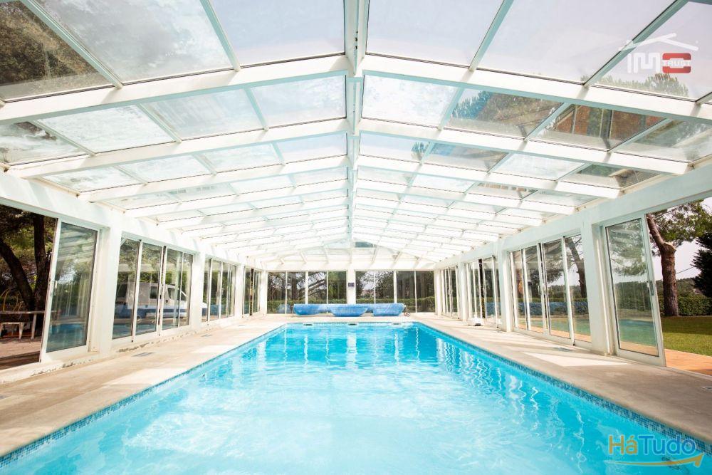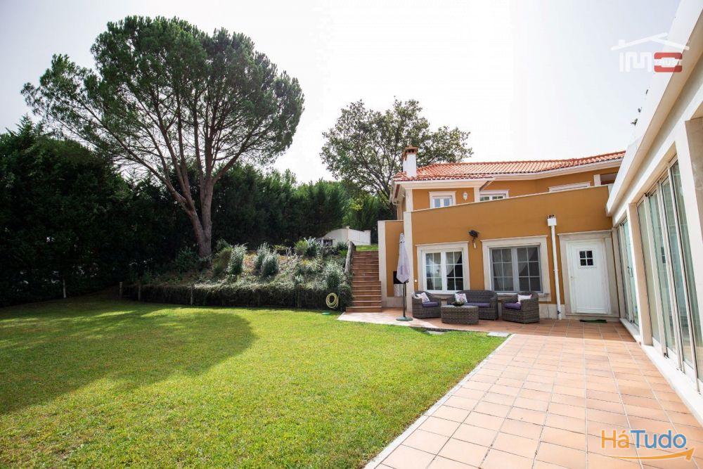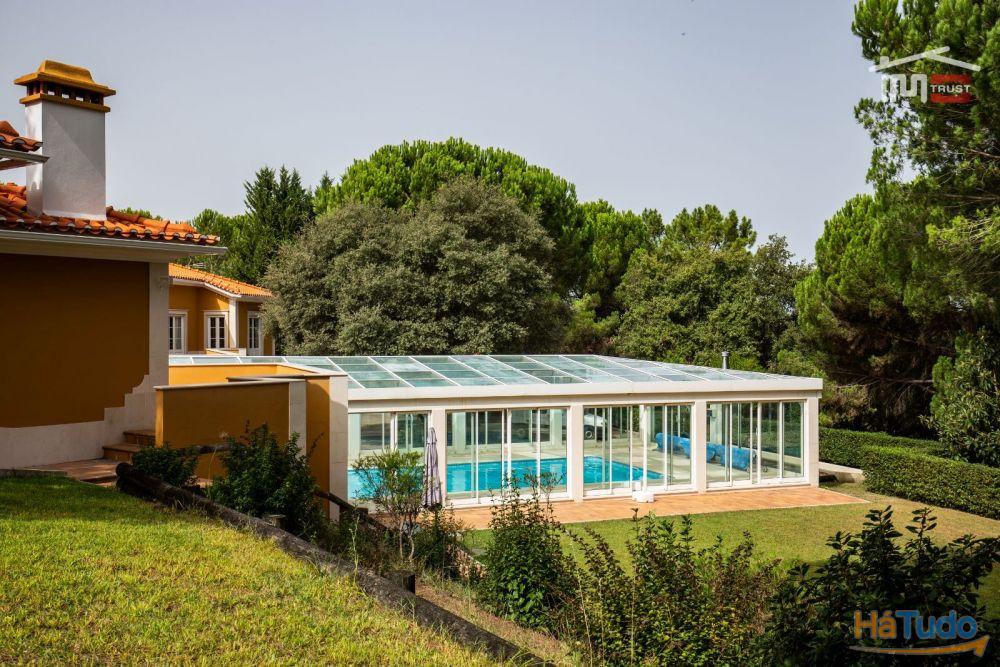 No exterior, poderá desfrutar de um magnífico jardim com rega automática, piscina coberta, churrasqueira, poço, árvores frondosas e um amplo logradouro. Para os amantes do automóvel, esta moradia dispõe de garagem fechada, tanto interior como exterior, com portão automático.
