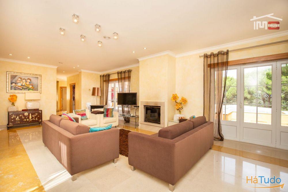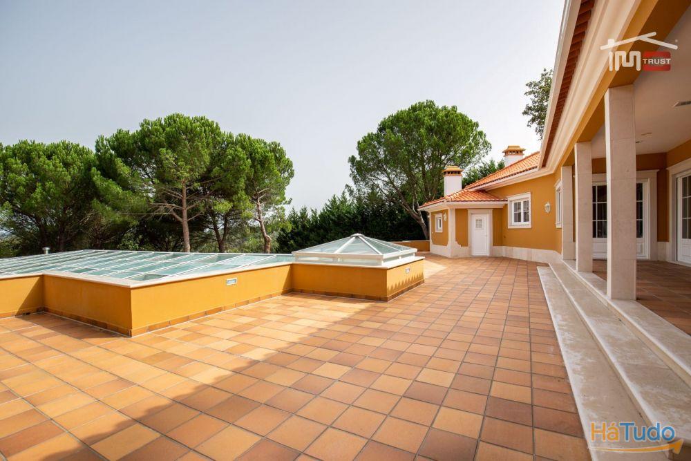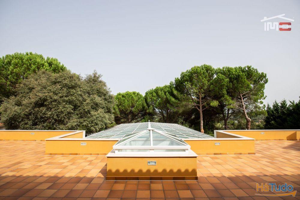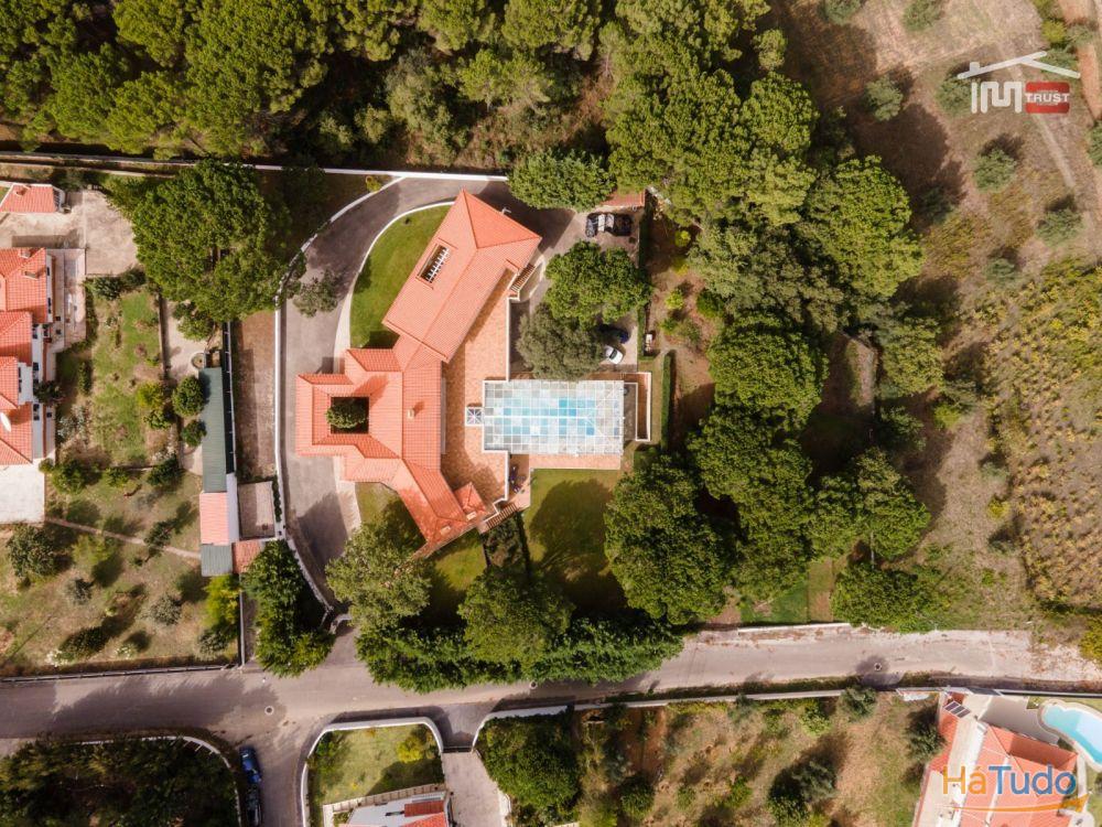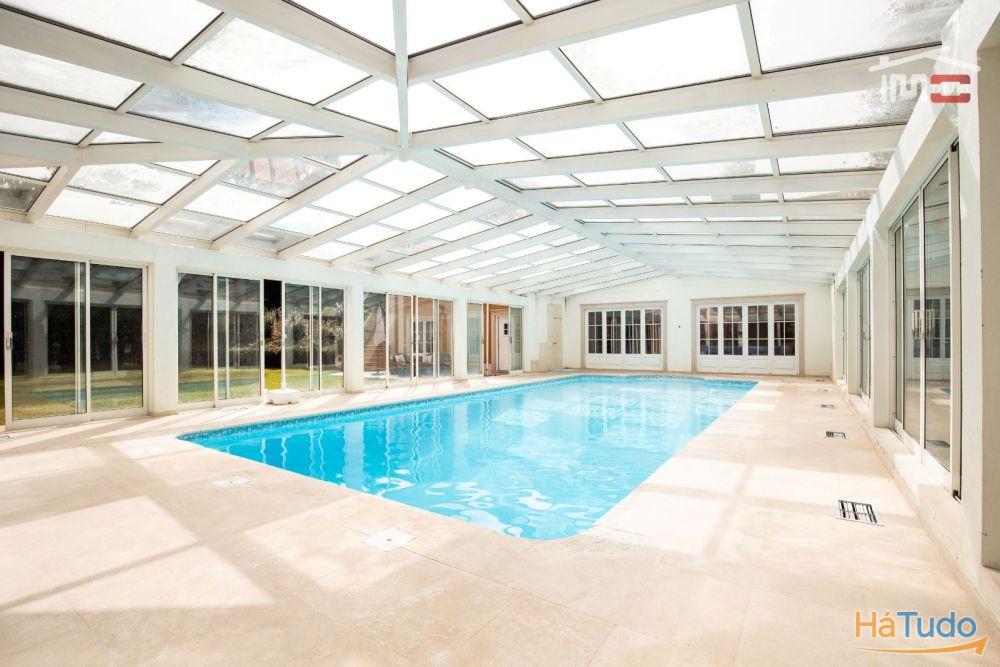 No exterior, poderá desfrutar de um magnífico jardim com rega automática, piscina coberta, churrasqueira, poço, árvores frondosas e um amplo logradouro. Para os amantes do automóvel, esta moradia dispõe de garagem fechada, tanto interior como exterior, com portão automático.