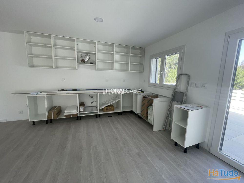 A cozinha encontra-se equipada com placa, forno, exaustor, máquina de lavar louça e ainda com um armário embutido de apoio e um terraço. Neste espaço tem ainda uma zona de lavandaria fechada para tratamento de roupas e onde se encontra a bomba de calor.