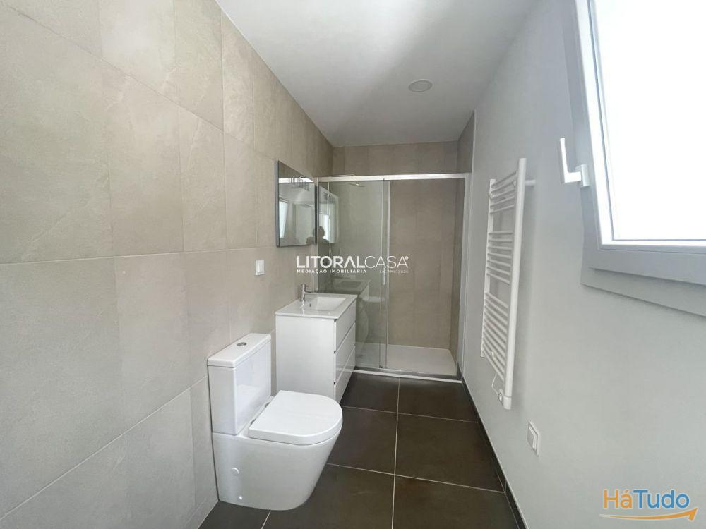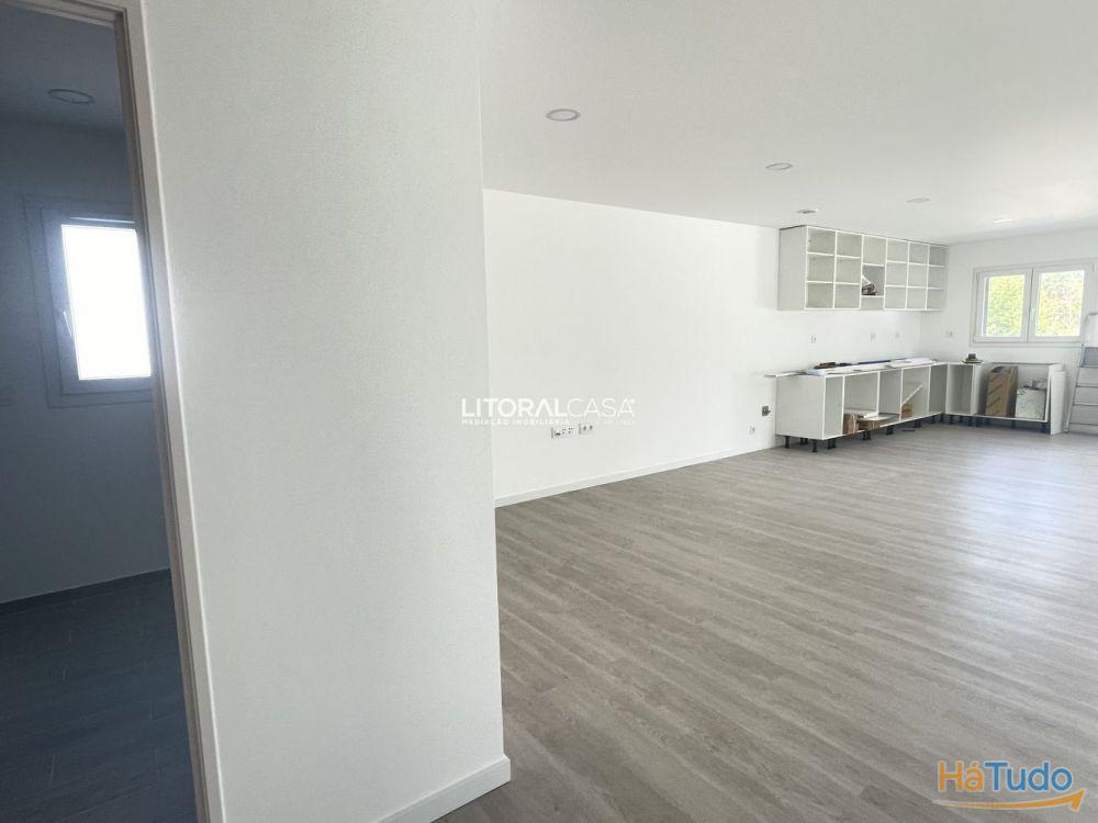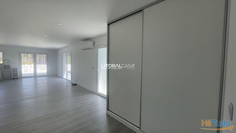 Outra entrada permite acesso ao interior da habitação diretamente para a zona social, constituída por uma sala e cozinha em openspace e casa de banho completa e equipada com toalheiros elétricos.