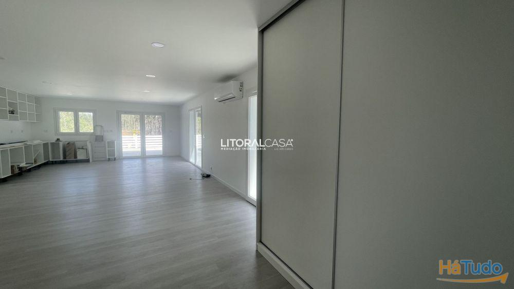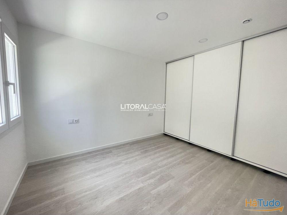 Uma entrada da casa com acesso pela garagem é composta por um hall com armário embutido, o qual dá acesso ao espaço privativo, onde se encontram os três quartos todos com roupeiros embutidos, sendo um dos quais suíte.