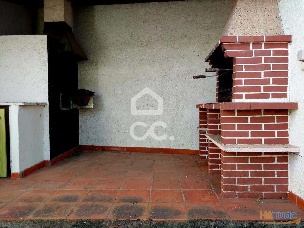 R/C: Átrio/corredor, sala, quatro quartos, cozinha, salão, casa de banho, pátio interior, duas garagens, dois arrumos, adega, alpendre com churrasqueira e alpendre para estacionamento;