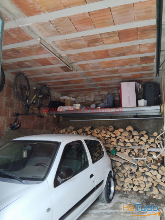 Garagem fechada, zona de arrumos e parque exterior