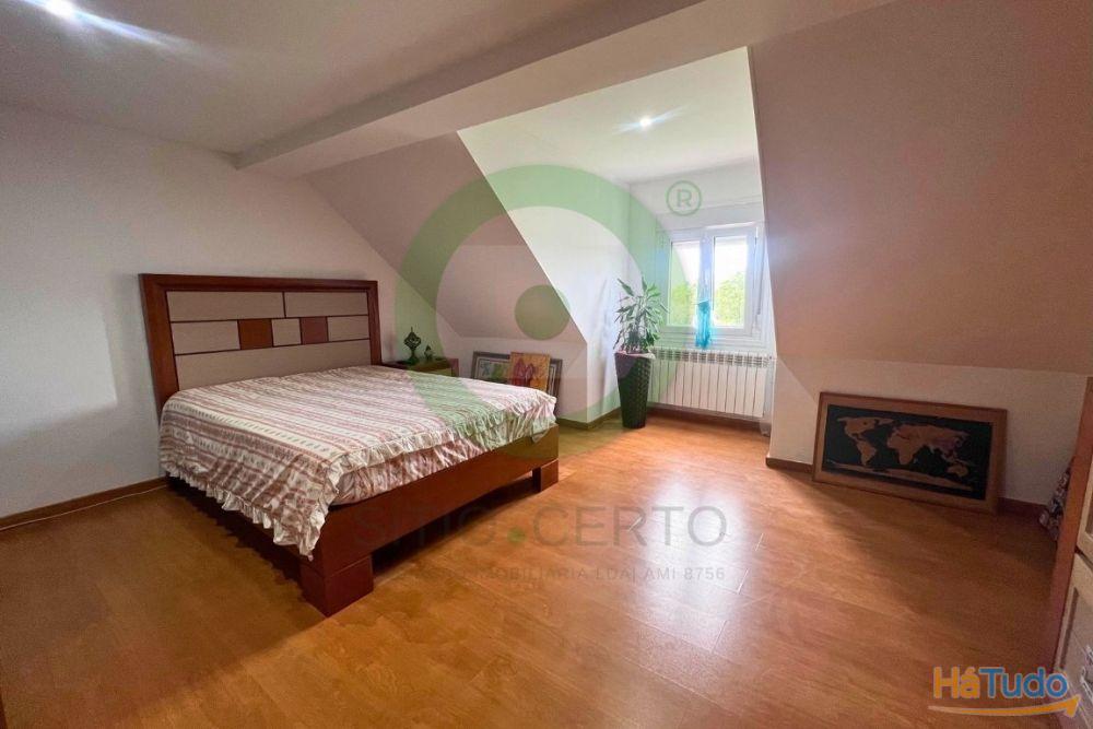 A moradia é composta por quatro quartos, várias zonas de estar, cozinha equipada, áreas de arrumação, lavandaria, garagem e um agradável espaço exterior com jardim e zona de lazer, ideal para momentos em família ou com amigos. É equipada com aquecimento central a gasóleo, tem ar condicionado na sala de estar e lareira. O terreno urbano oferece ainda potencial para construção complementar, piscina ou outras funcionalidades a gosto.
