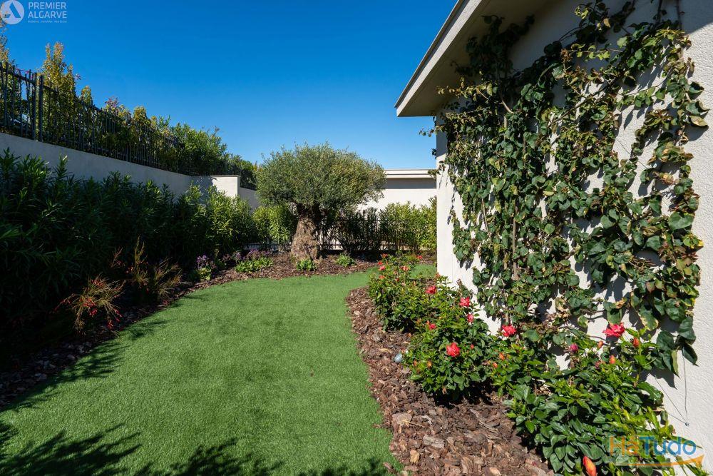 Terreno vedado Jardim mediterrâneo paisagístico (Olivier, Rosa branca ou vermelha, Buganvília, Butia, Loureiro, Lavanda, Alecrim...) Relva sintética em toda a propriedade Acesso de segurança por videofone Propriedade totalmente vedada