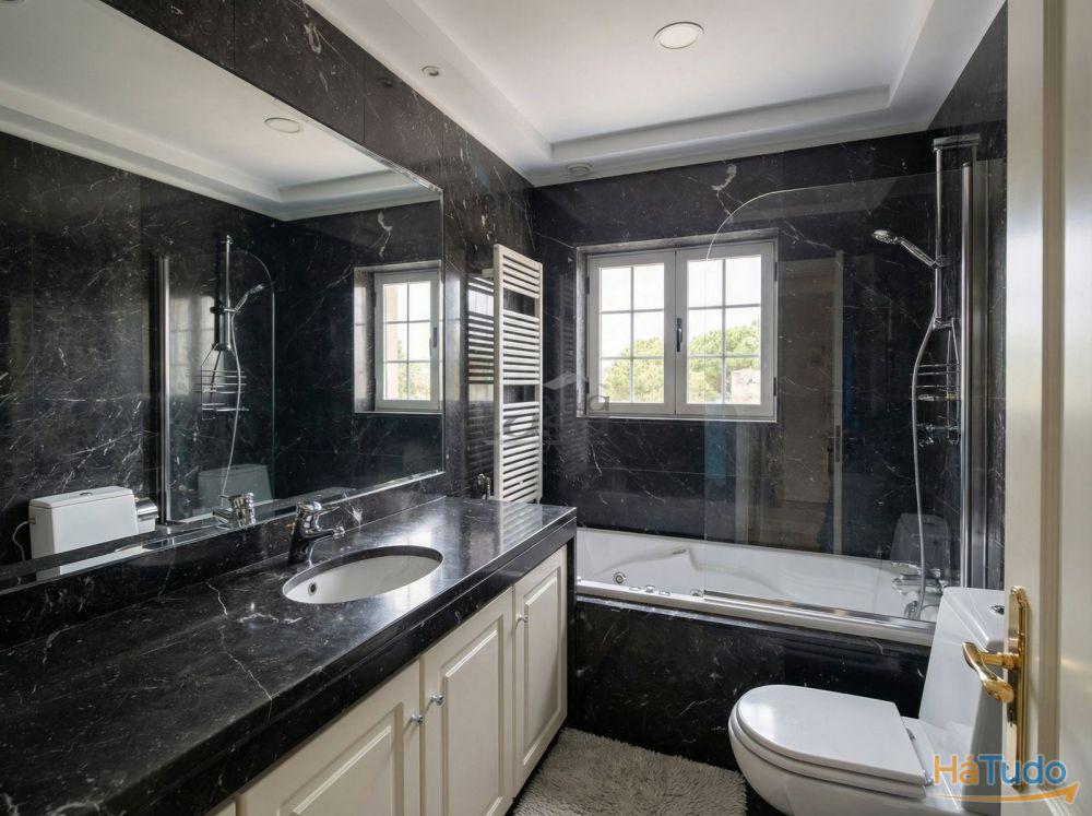 Esta moradia espaçosa oferece 4 quartos, ( 2 suítes ) + escritório, podendo até ser configurada para 5 quartos, garantindo espaço para toda a família. No rés do chão, um escritório, uma sala comum com lareira e recuperador de calor cria um ambiente acolhedor, enquanto a cozinha completamente equipada atende às necessidades dos amantes da culinária. A cave impressionante abriga uma garagem, salão de jogos com bar e mesa de bilhar, além de uma casa de banho de serviço com base de chuveiro.